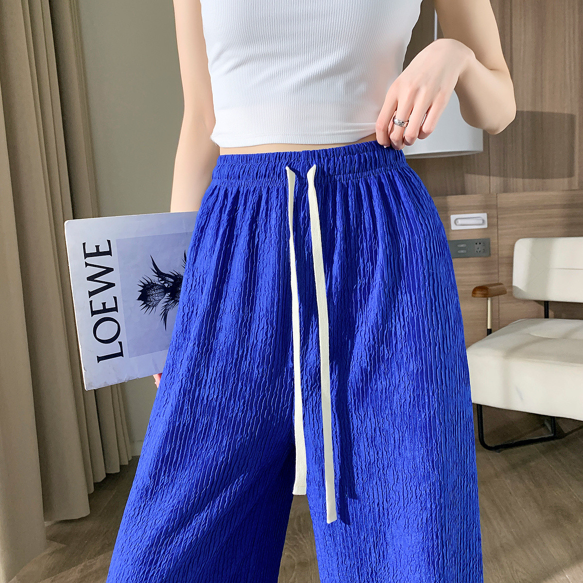 【褶皱阔腿休闲裤】夏学院风微弹长裤系绳休闲裤 319489
