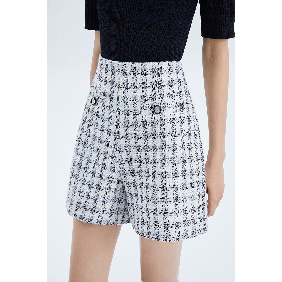 【商场同款】短裤女春季复古洋气格纹显瘦高腰休闲短裤 029979