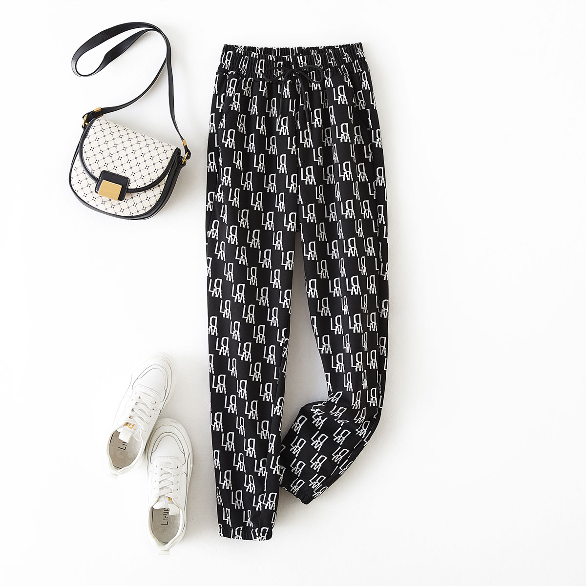时尚印花针织束脚休闲裤春秋两用垂感女裤 931777