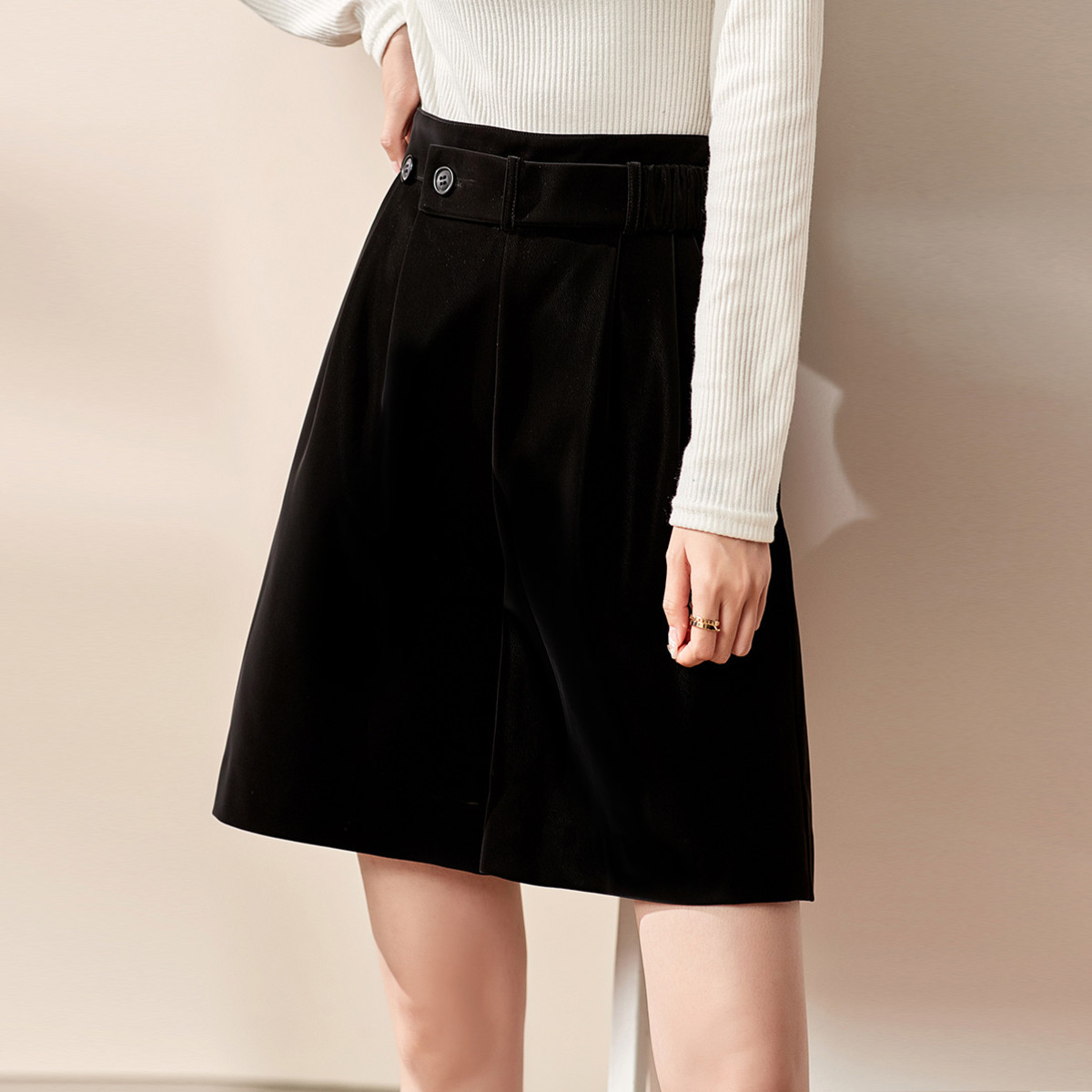 地素环保皮短裤春秋季直筒简约通勤休闲短裤女 725899