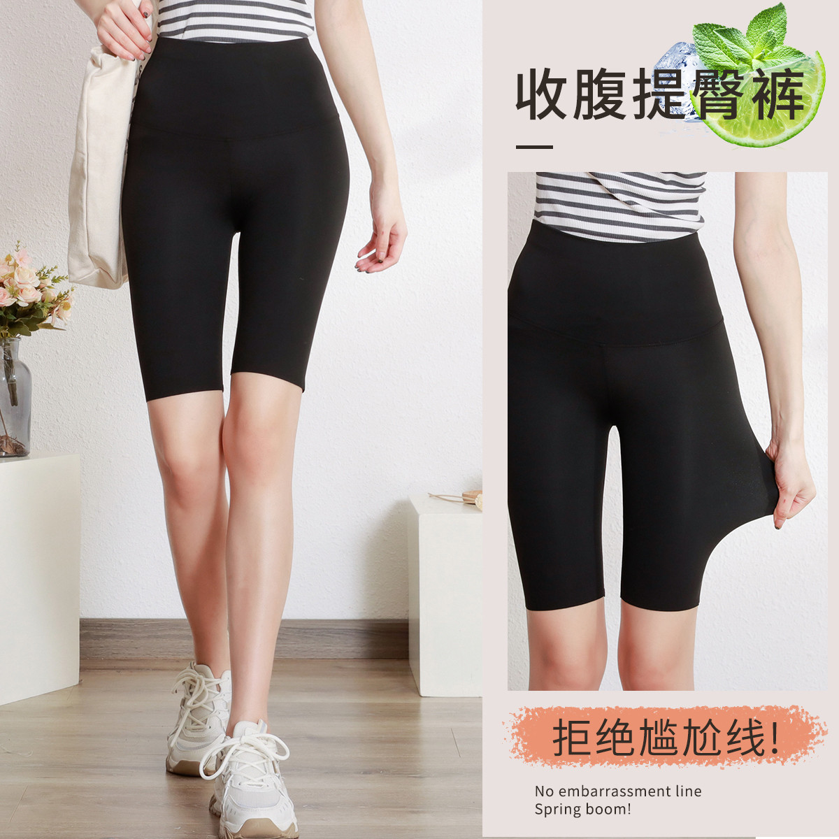 【无痕高腰】五分平口芭比裤夏季薄款健身收腹瑜伽可外穿鲨鱼裤女 981707