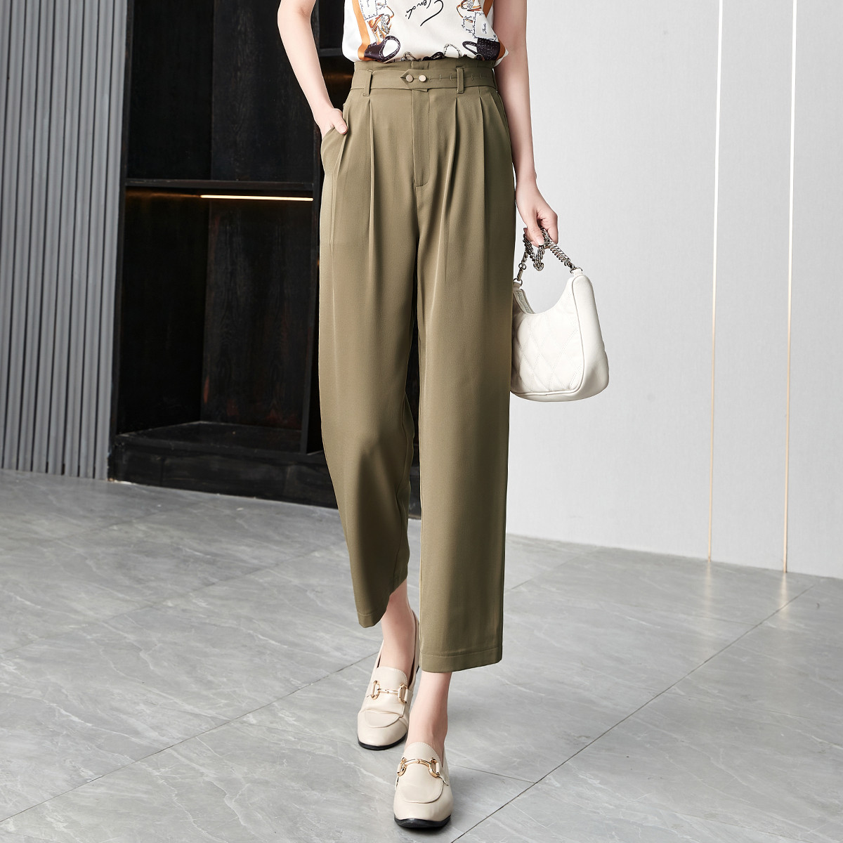 【精致调节扣高腰九分休闲裤】夏款显腿长女式休闲裤女 629058