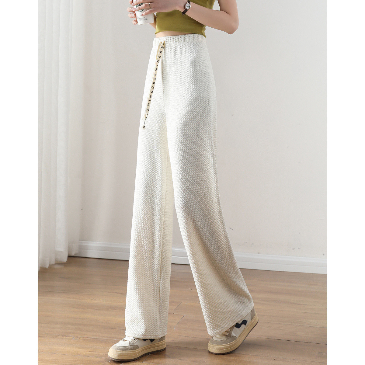 【气泡字母带】春秋高腰女裤微弹裤子宽松系绳阔腿休闲裤 903169