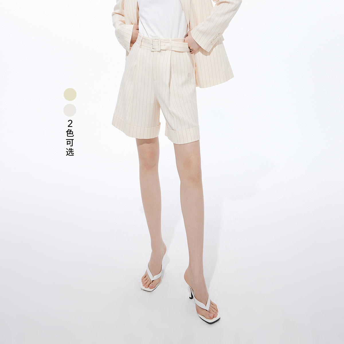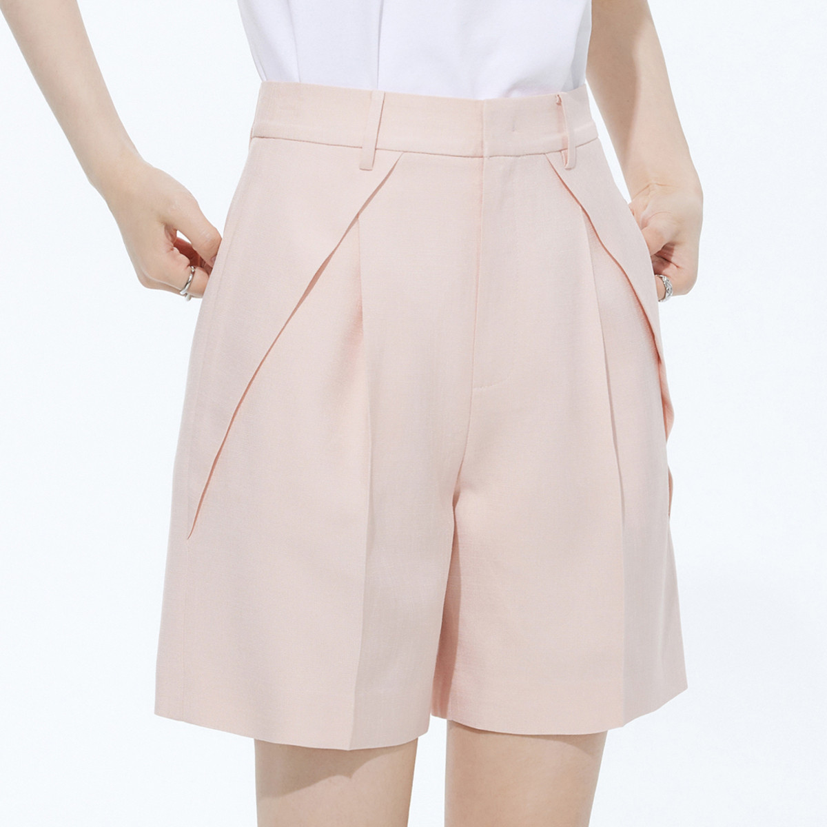 短裤女春季薄款光泽感褶裥通勤气质纯色高腰短裤 164315