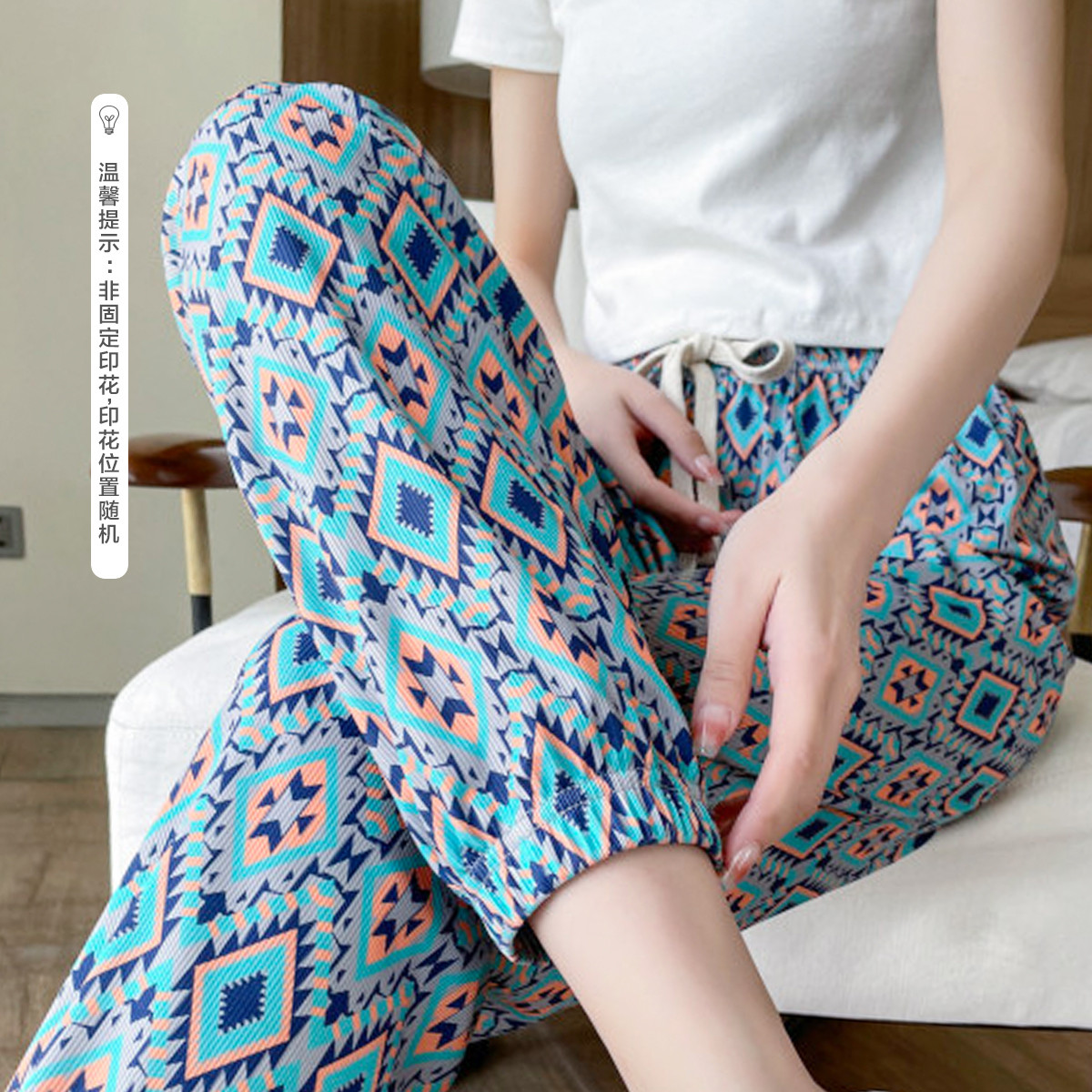 【菱纹清花色束脚裤】夏印花字母薄款女裤子女休闲裤 704897