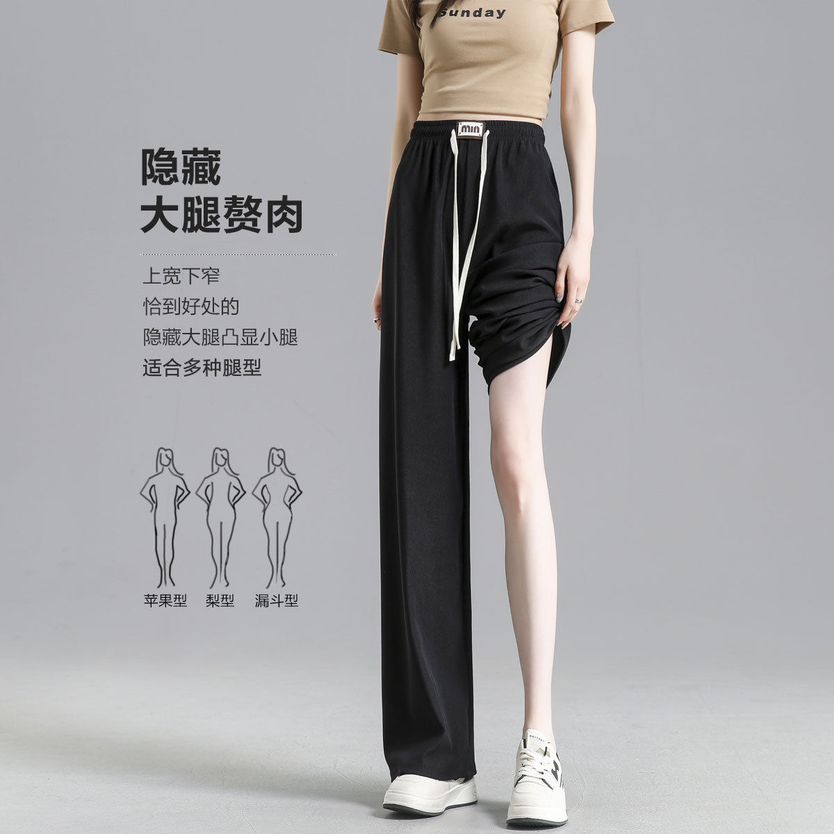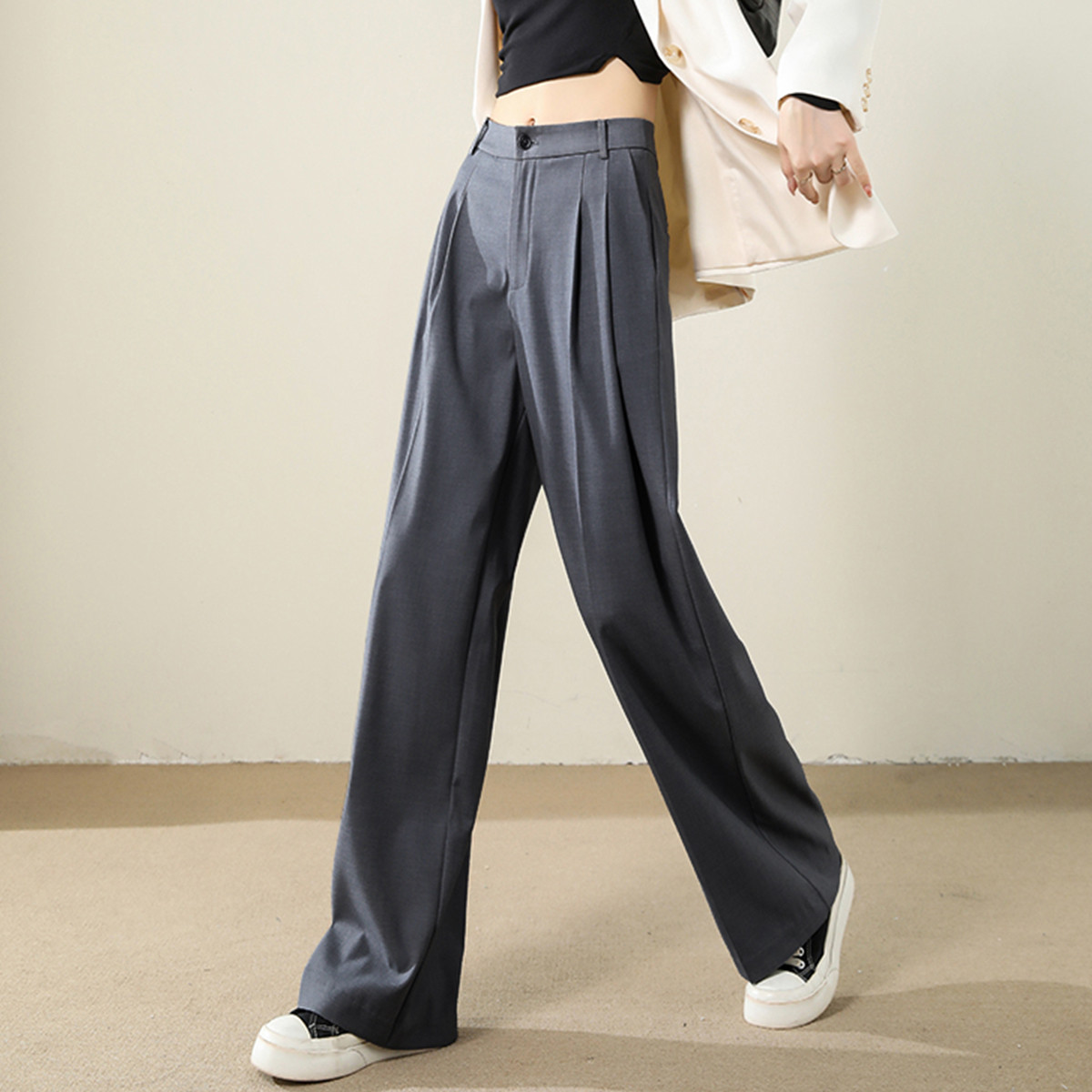 宽松高腰直筒裤子女春夏秋百搭时尚韩版显瘦阔腿西装休闲裤 884371