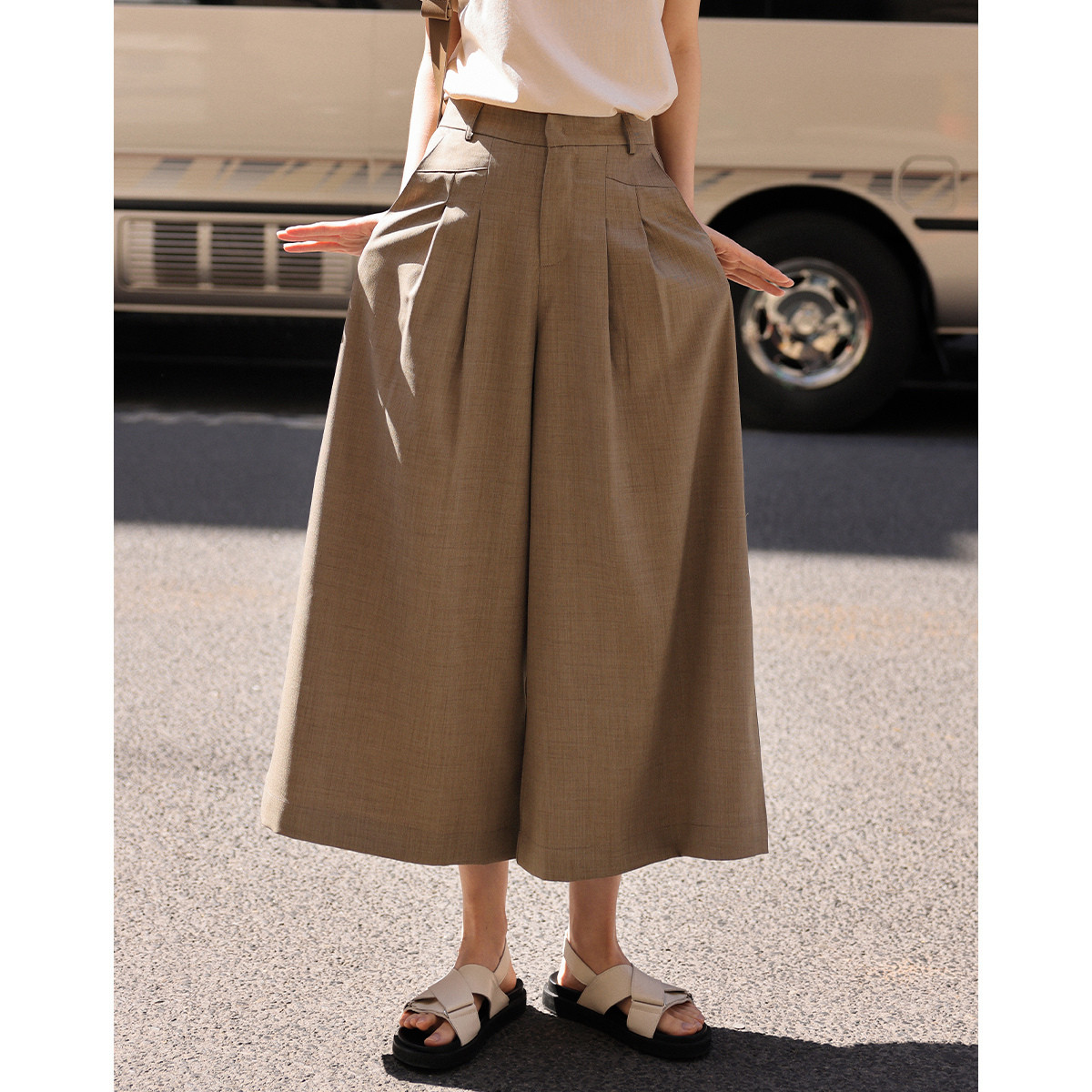 【压褶裙裤】夏装休闲隐形扣平腰头压褶装饰裙裤女 038530