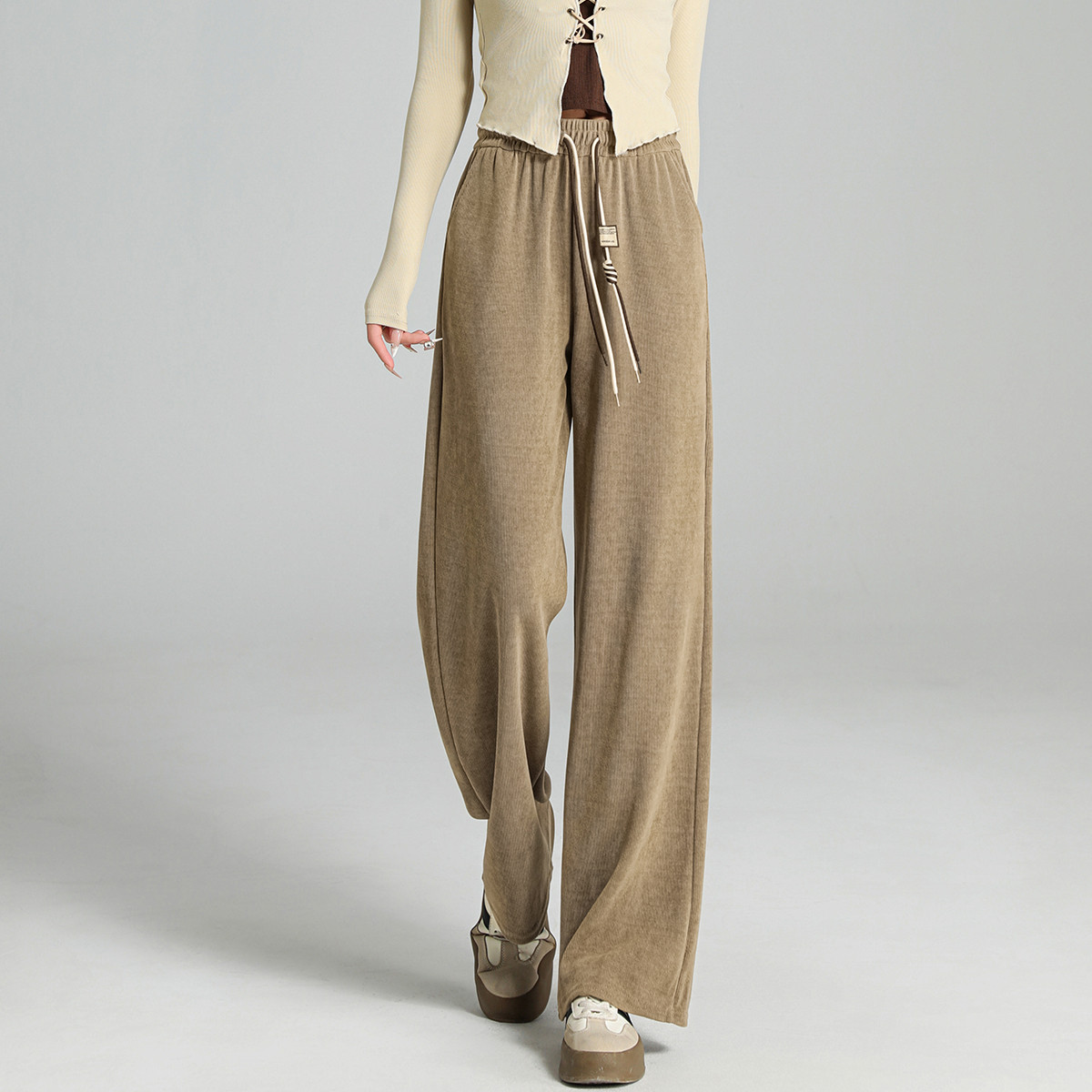 【木棉绒阔腿休闲裤】春秋季中腰松紧长裤宽松女裤子女 093761