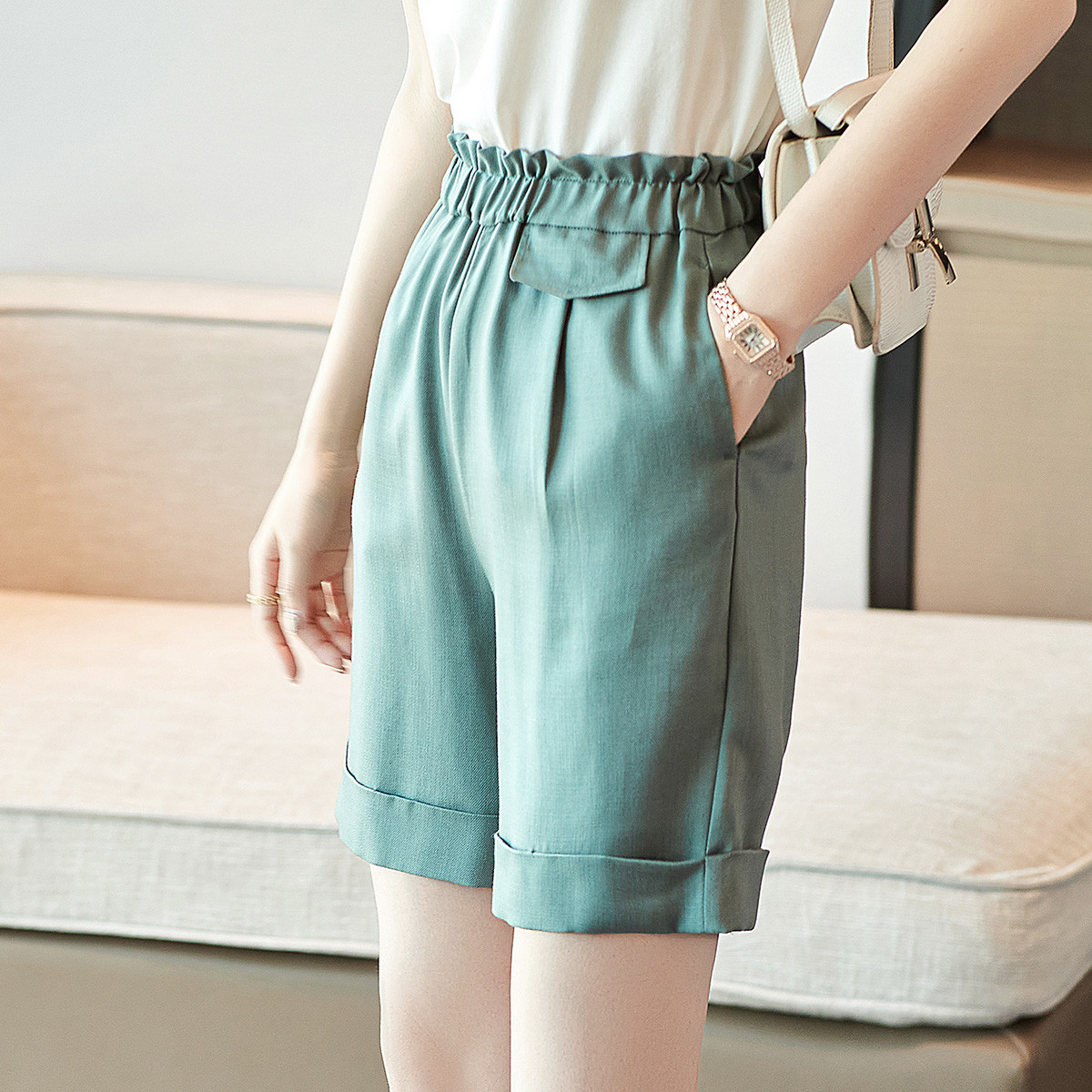 地素环保皮短裤春秋季直筒简约通勤休闲短裤女 725899