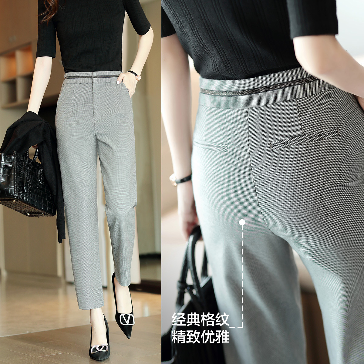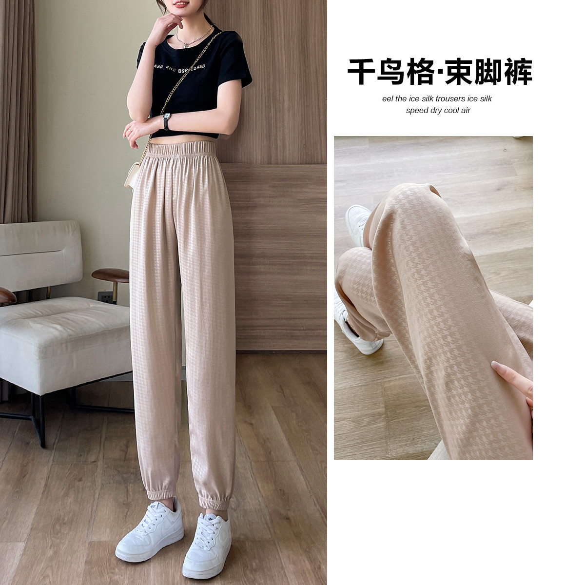 【千鸟格束脚裤】夏季中腰松紧女裤薄款裤子女清休闲裤 576449