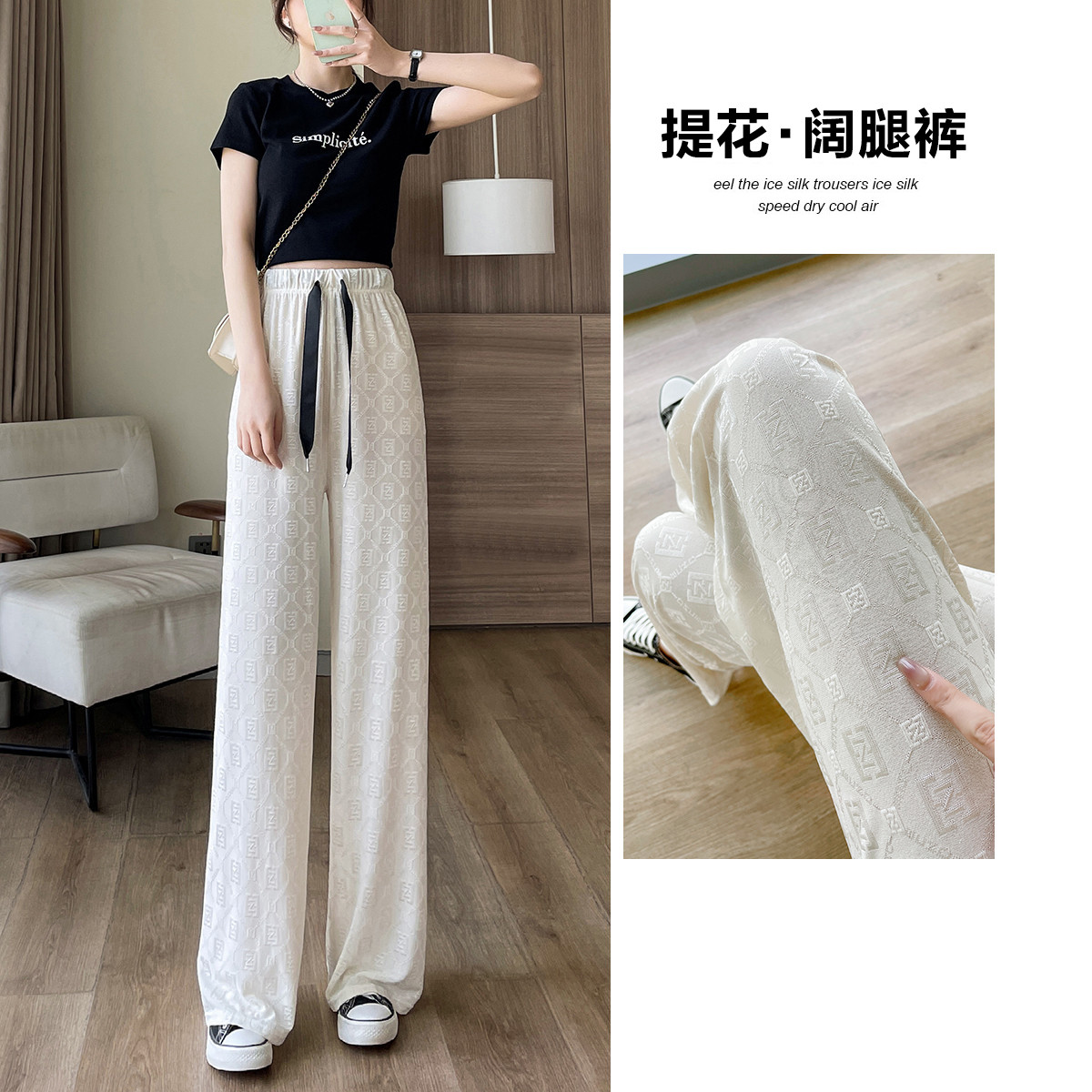【提花阔腿裤】夏季松紧腰女裤系绳字母裤子女宽松休闲裤 237441