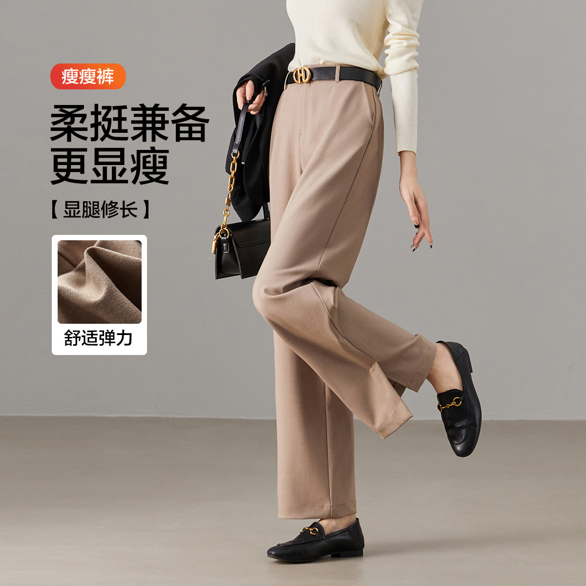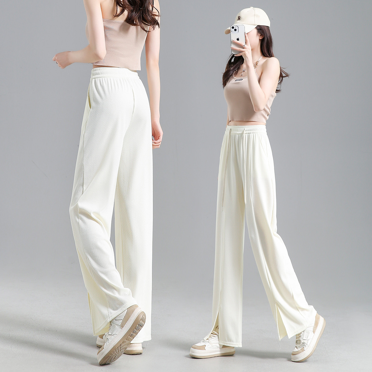 【名媛开衩休闲裤】春秋季松紧腰长裤微弹直筒女裤子女 195265