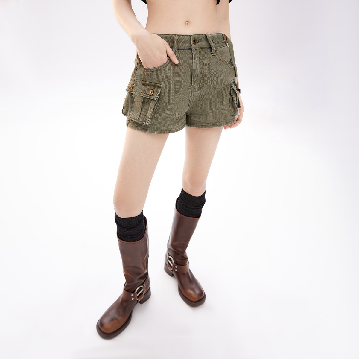 美式复古大口袋牛仔短裤女辣妹工装a字热裤 445396
