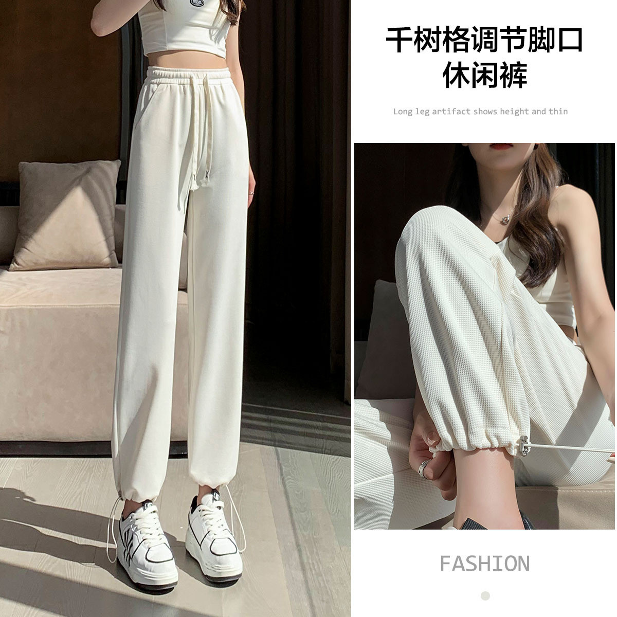 【脚口抽绳休闲裤】夏款休闲风松紧抽绳腰直筒长裤女 486914