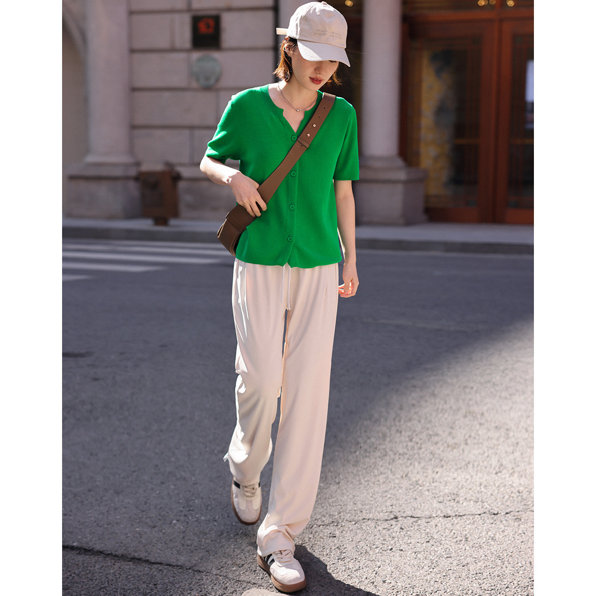 玖姿旗下安娜蔻系列都市休闲百搭松紧腰舒适直筒裤女装夏季 112012