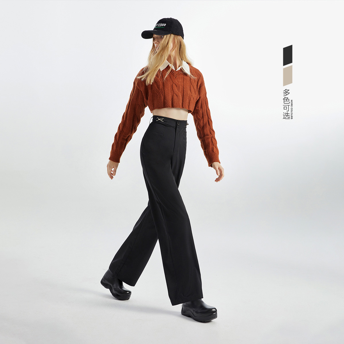 多色阔腿裤春秋港风复古宽松黑色休闲裤女高级小众感 069780