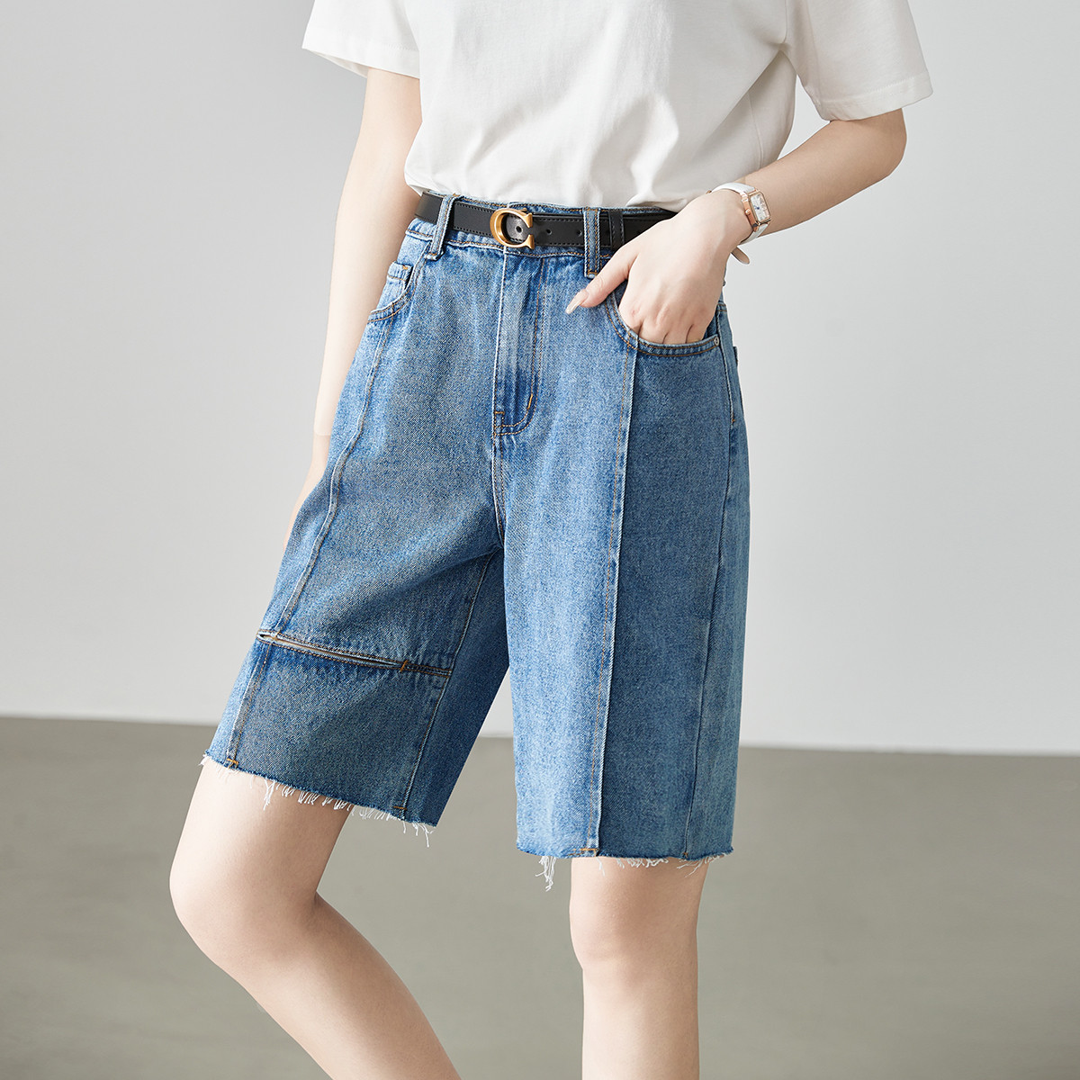 【棉质破洞牛仔五分裤】夏季割破直筒女裤子女式牛仔短裤 826433