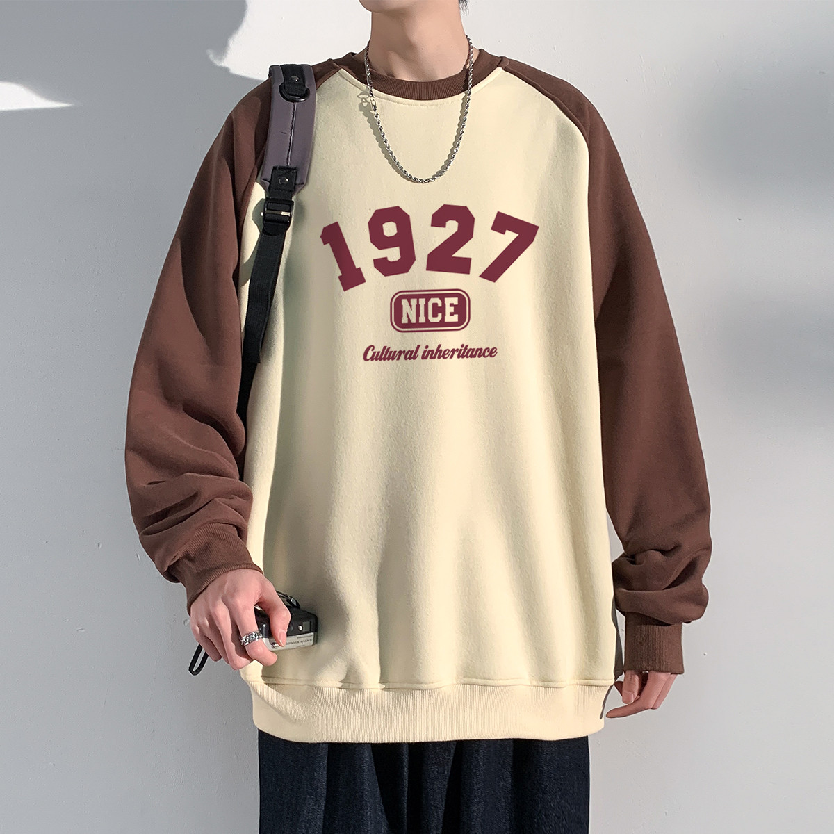 圆领卫衣男女春秋季潮牌ins宽松拼色外套港风男生插肩袖上衣 424339