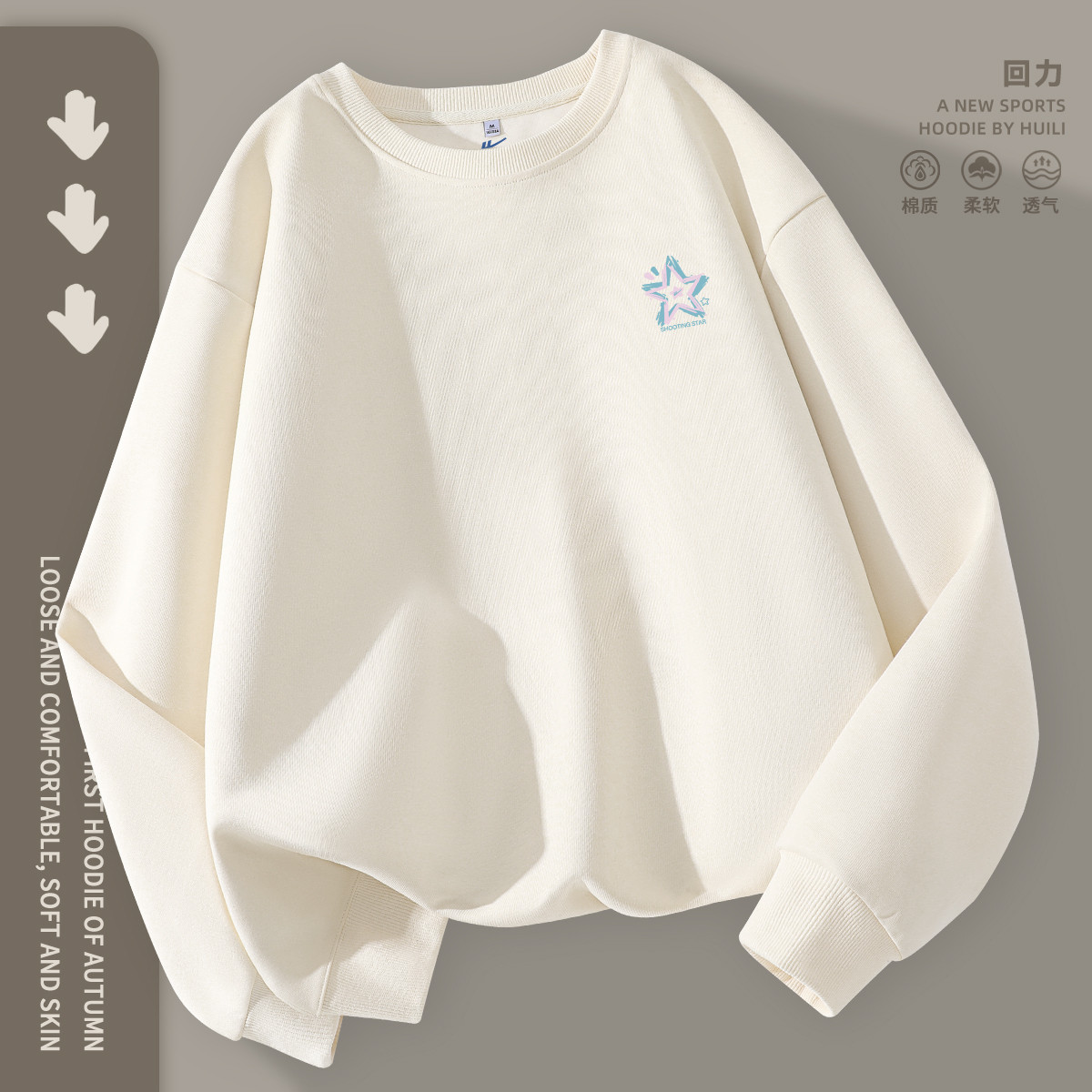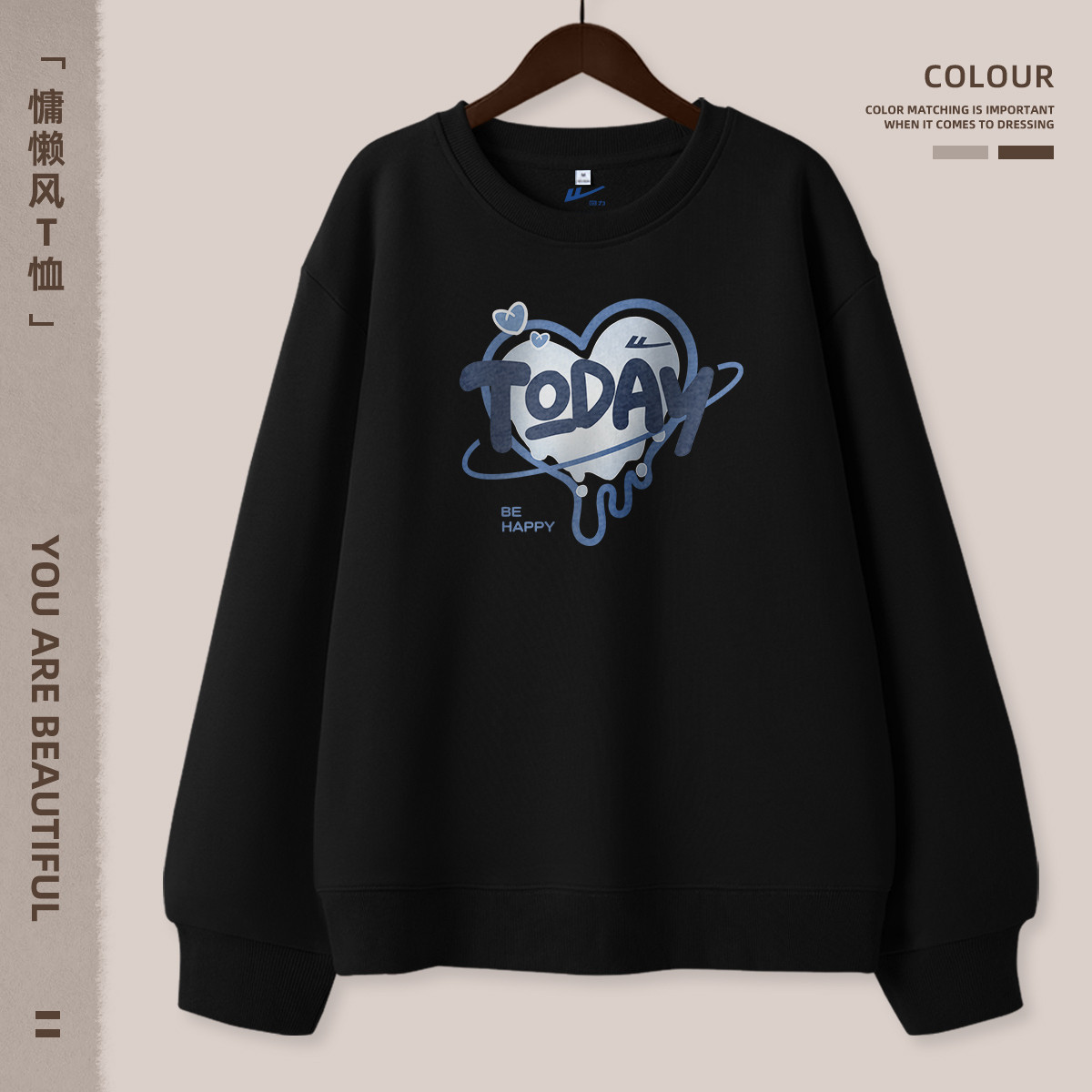 慵懒风圆领卫衣男女外套春宽松百搭无帽长袖情侣套头上衣女 055507