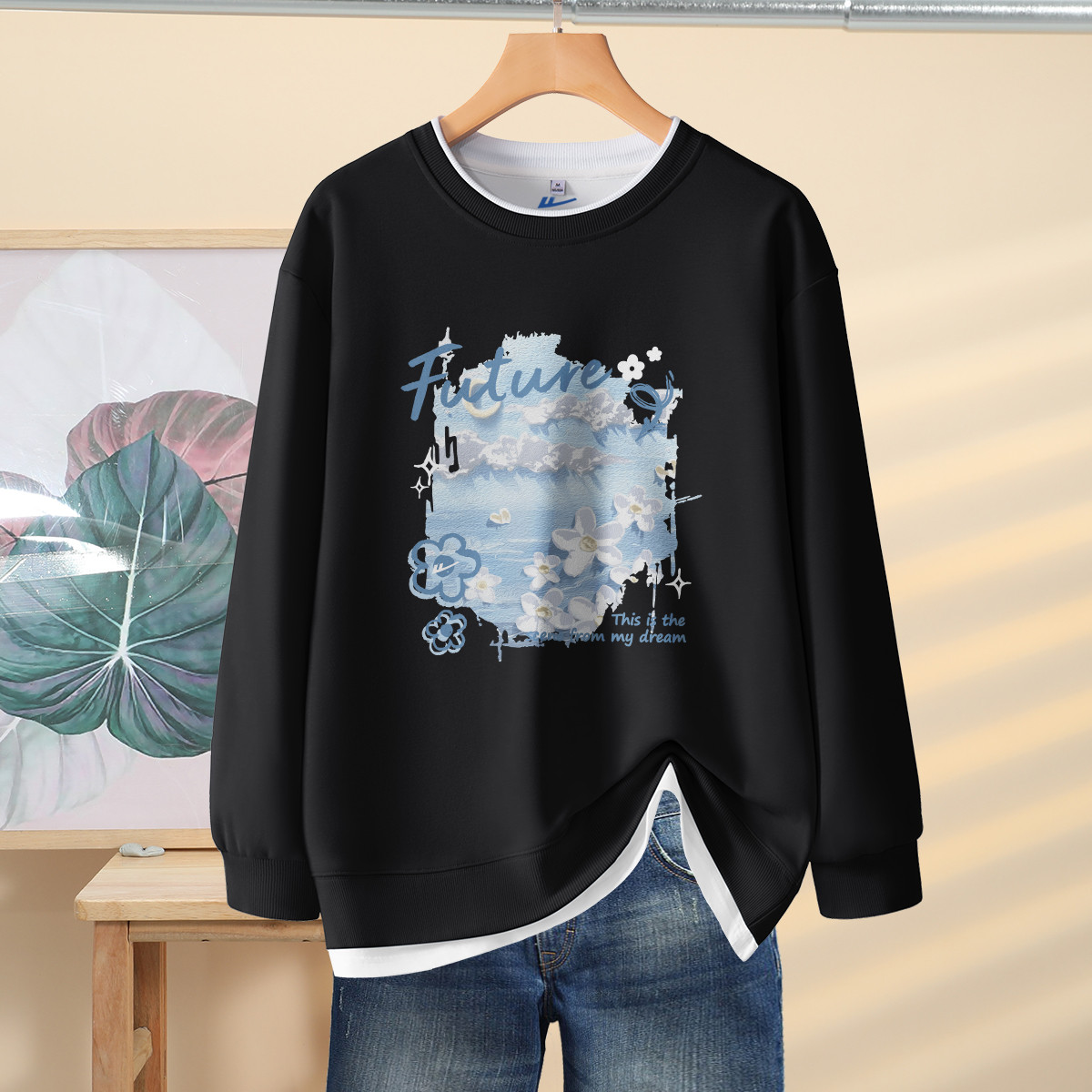 【女装】女式圆领假两件套头卫衣时尚百搭宽松针织印花上衣 643923