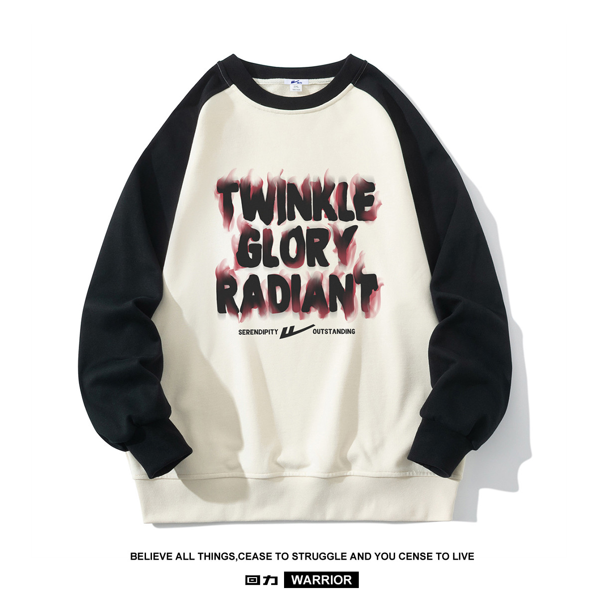 【重磅棉】撞色插肩袖卫衣男女拼接宽松外套慵懒美式复古情侣上衣 670931