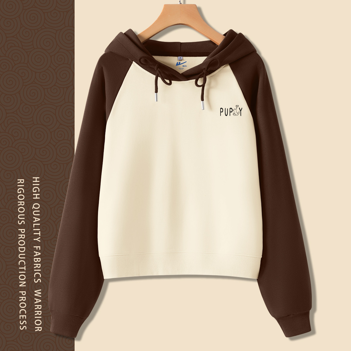【女装复古撞色】春秋女式设计感运动休闲连短款帽卫衣高腰小个子 854035