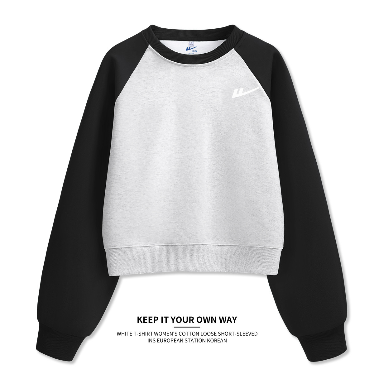 【女装】女式早春插肩袖短款圆领撞色卫衣休闲减龄小个子上衣 760339