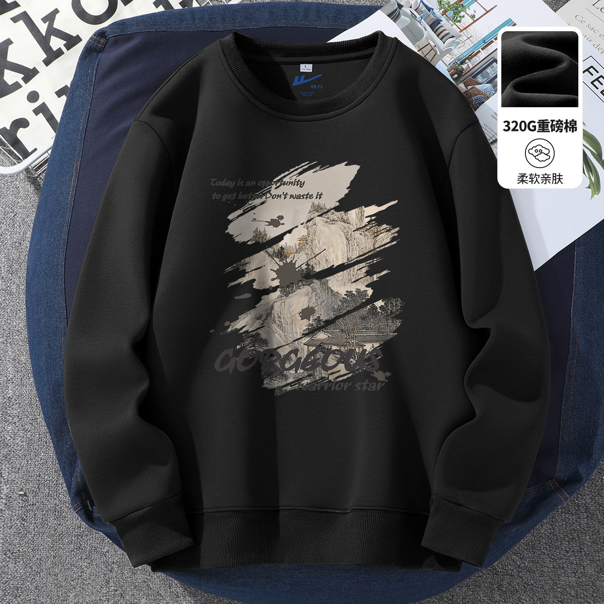 【重磅棉款】美式休闲春秋款长袖圆领卫衣男潮流大码男士运动上衣 147923