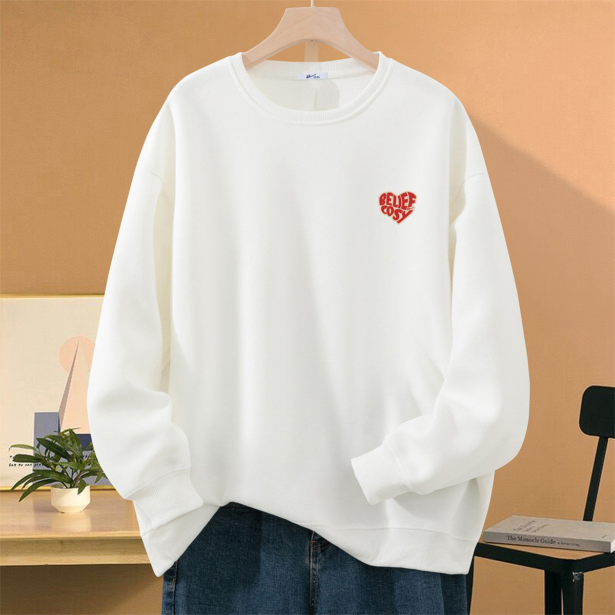 【重磅棉】日系简约爱心刺绣圆领卫衣男女款潮牌宽松百搭打底上衣 216787