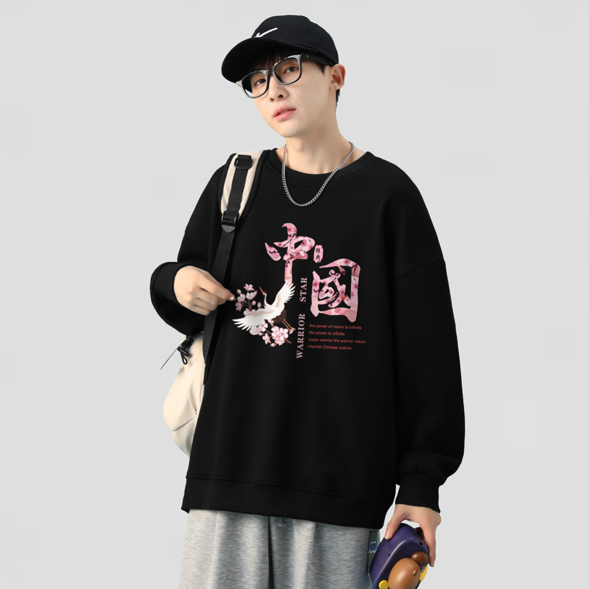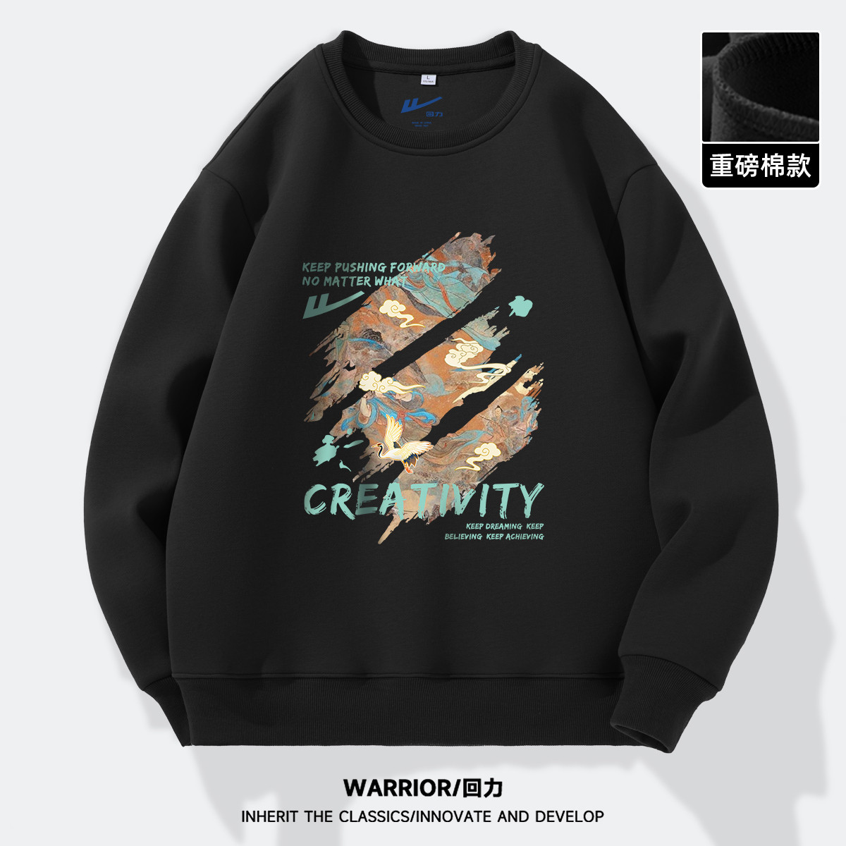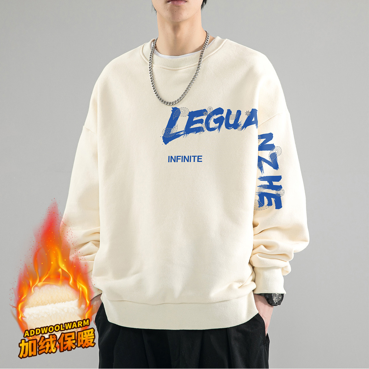 运动卫衣男日系潮牌潮流休闲百搭上衣加绒可选情侣宽松圆领长袖 791763