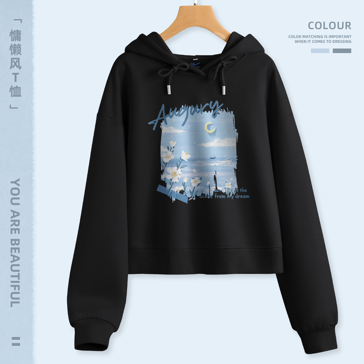 【女装】春秋女士连帽卫衣运动休闲百搭短款宽松上衣潮 651859