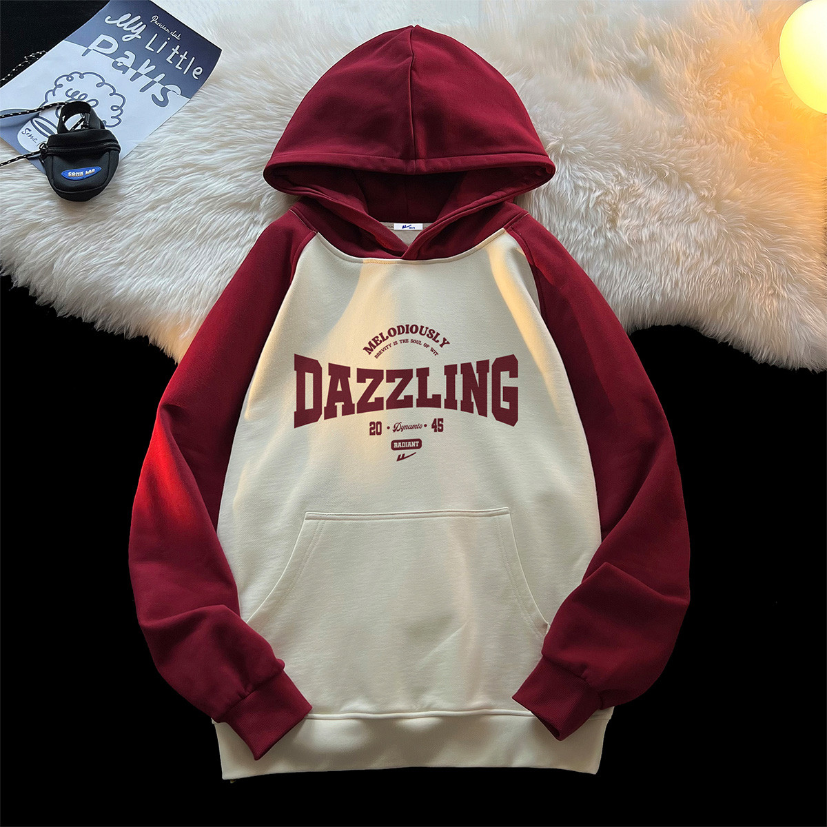 【重磅棉】美式复古插肩连帽卫衣男女同款宽松慵懒风百搭情侣外套 772115