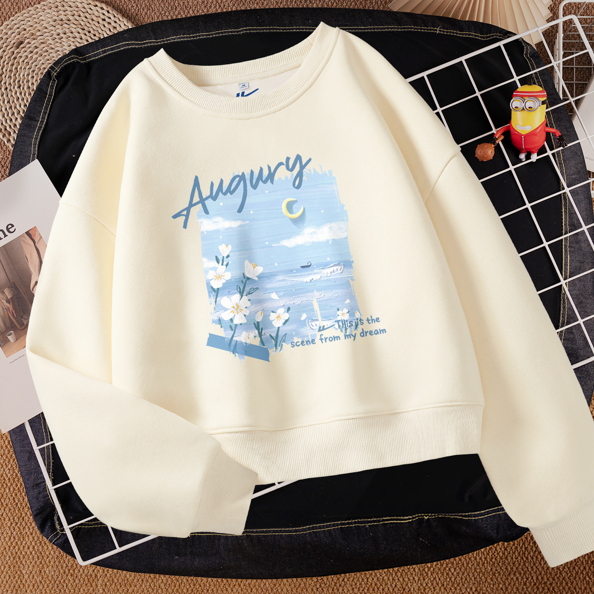 慵懒风圆领卫衣男女外套春宽松百搭无帽长袖情侣套头上衣女 055507