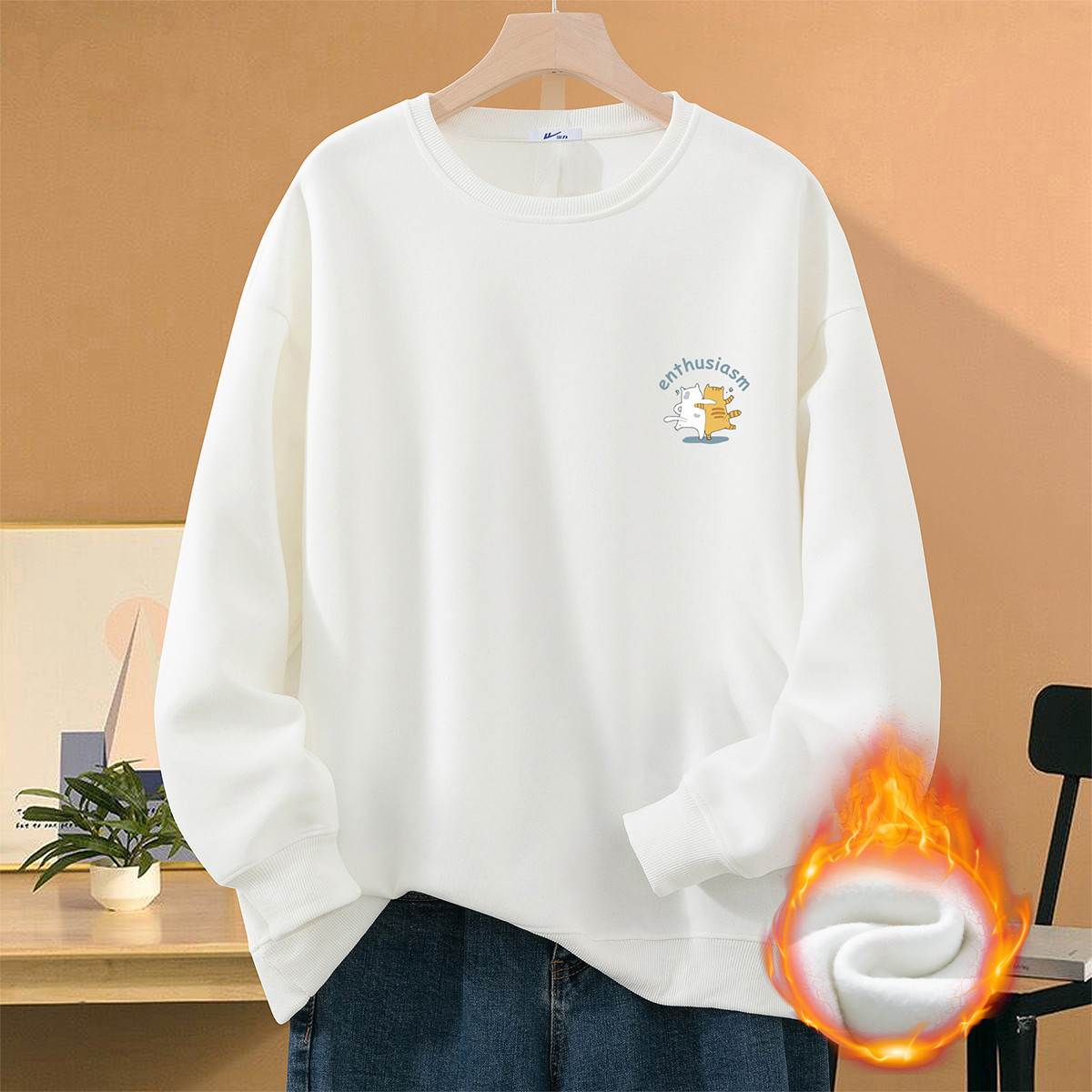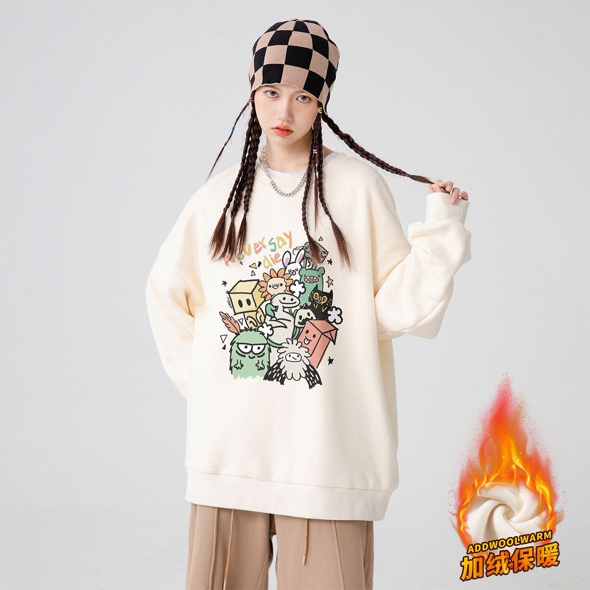 【加绒重磅棉】oversize宽松无帽卫衣女韩系情侣圆领上衣 823571