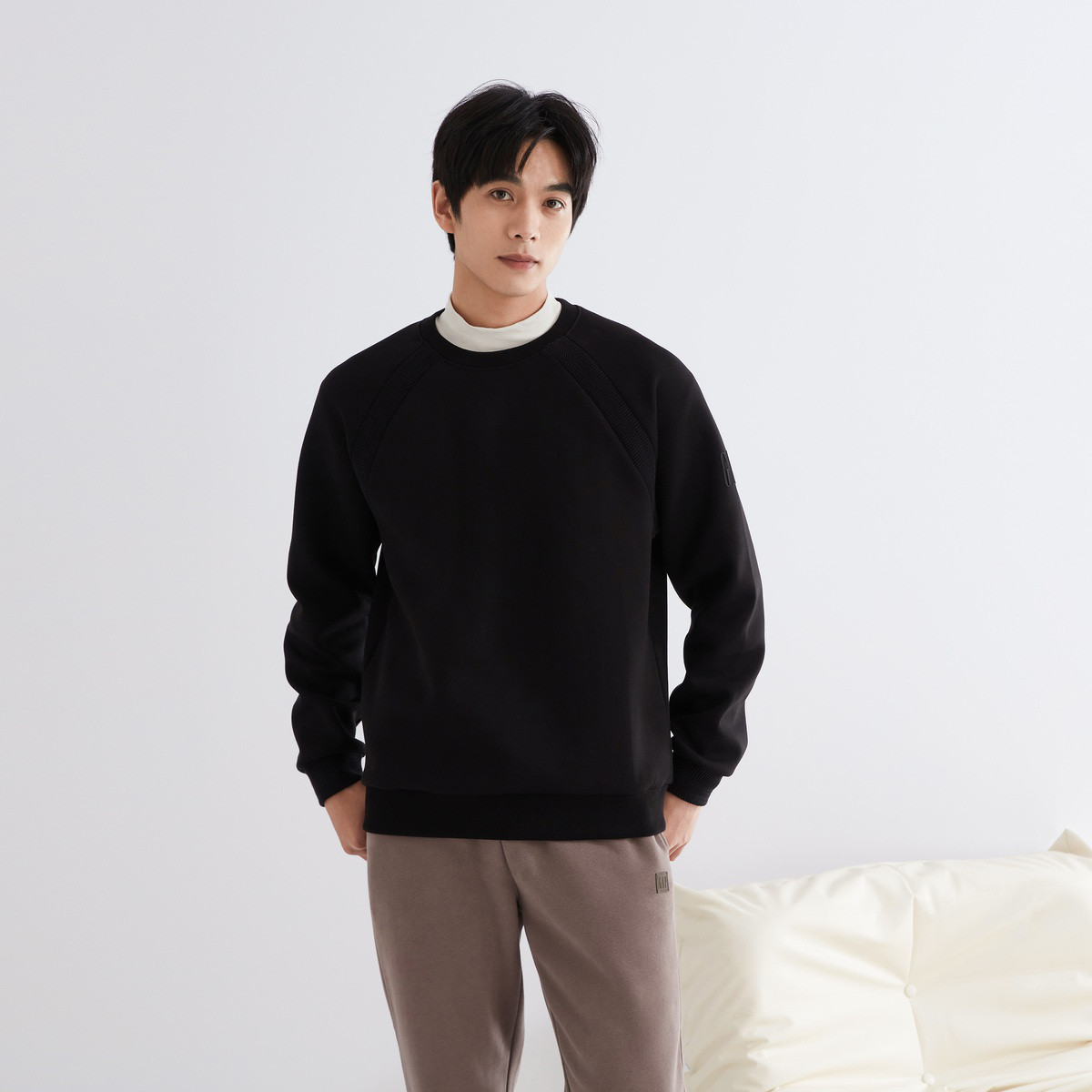 秋冬爆款拼色插肩袖卫衣男宽松舒适保暖透气大众休闲简约帅气上衣 544019