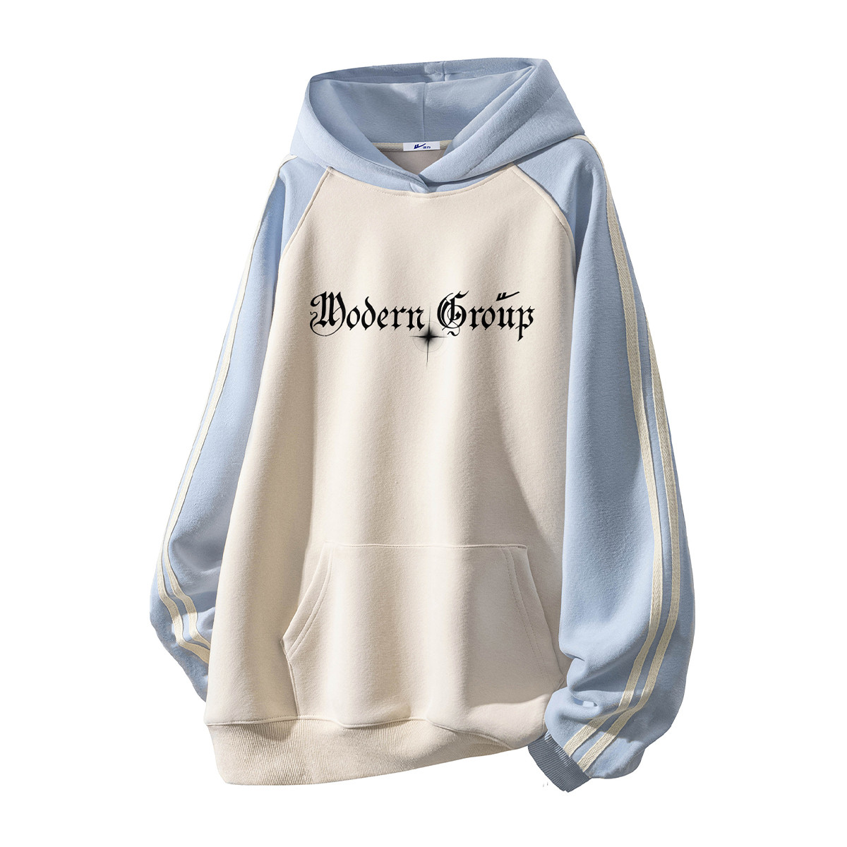拼接撞色条纹连帽卫衣男女同款插肩袖慵懒设计感宽松重磅休闲外套 535251