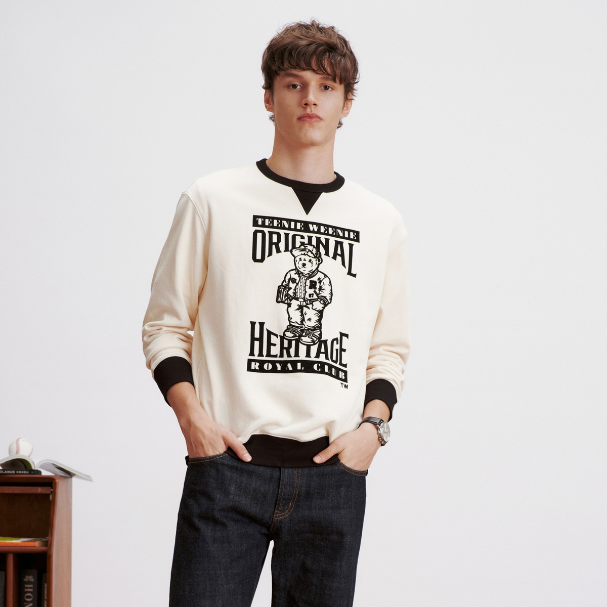 小熊男装休闲圆领卫衣男秋季复古学院风情侣 994433