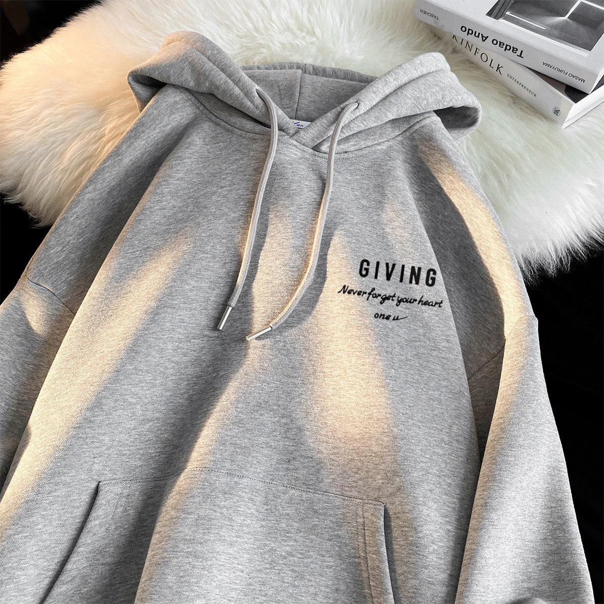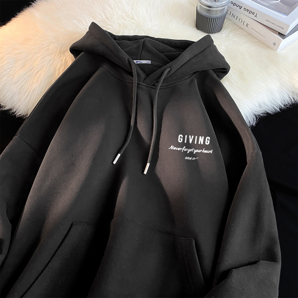 【加绒可选】美式慵懒套头连帽卫衣男女宽松情侣帽衫字母外套 559955