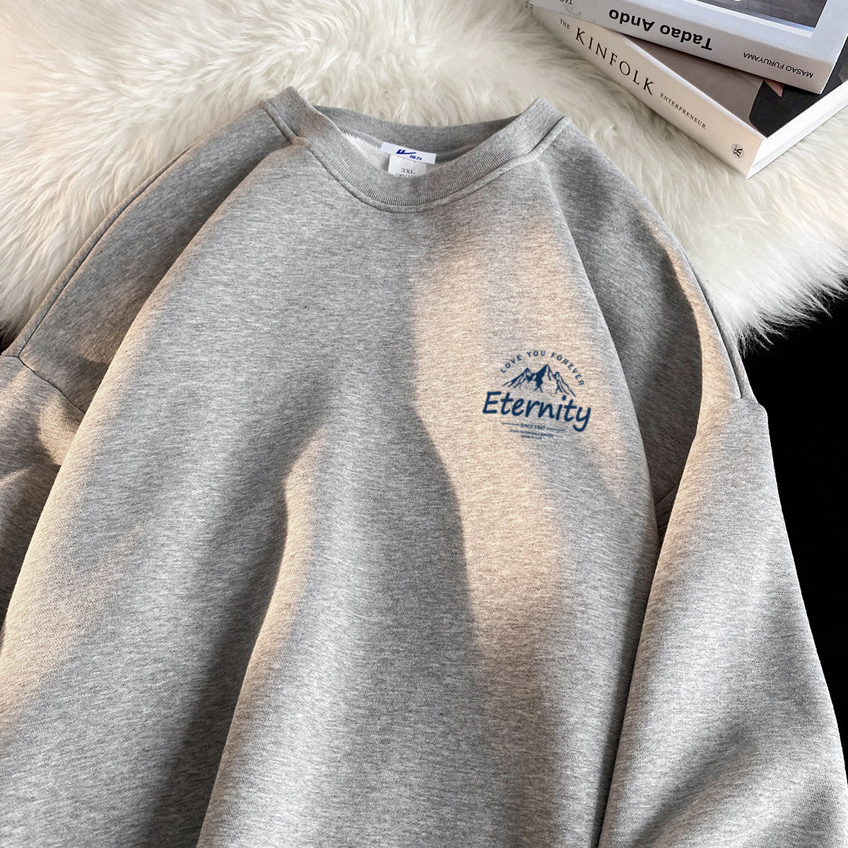 运动卫衣男日系潮牌潮流休闲百搭上衣加绒可选情侣宽松圆领长袖 791763