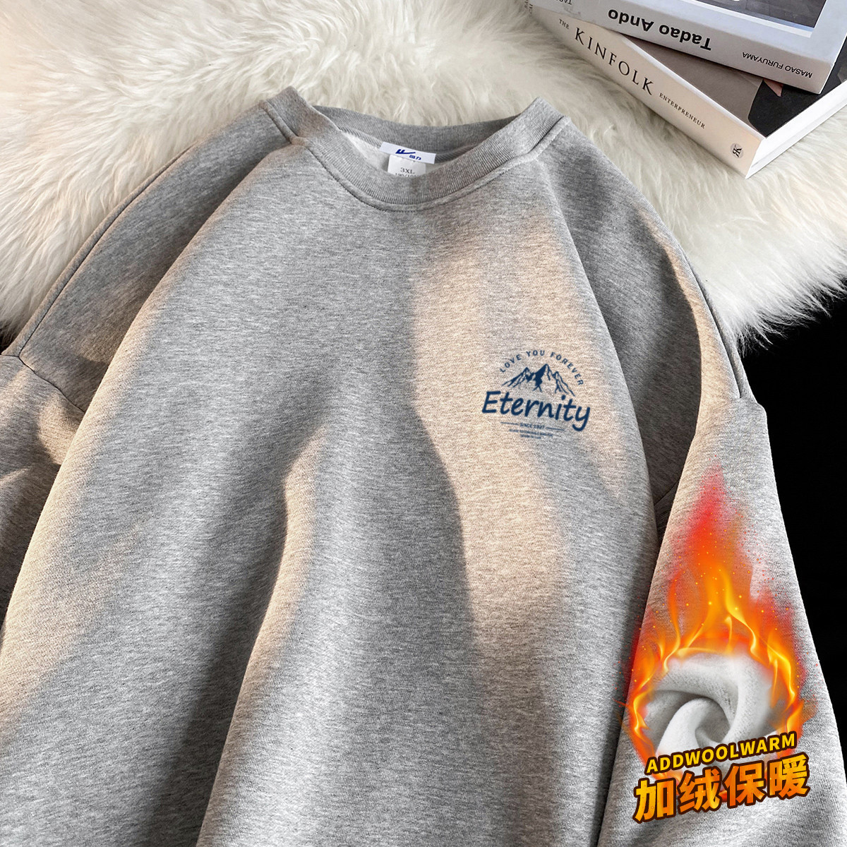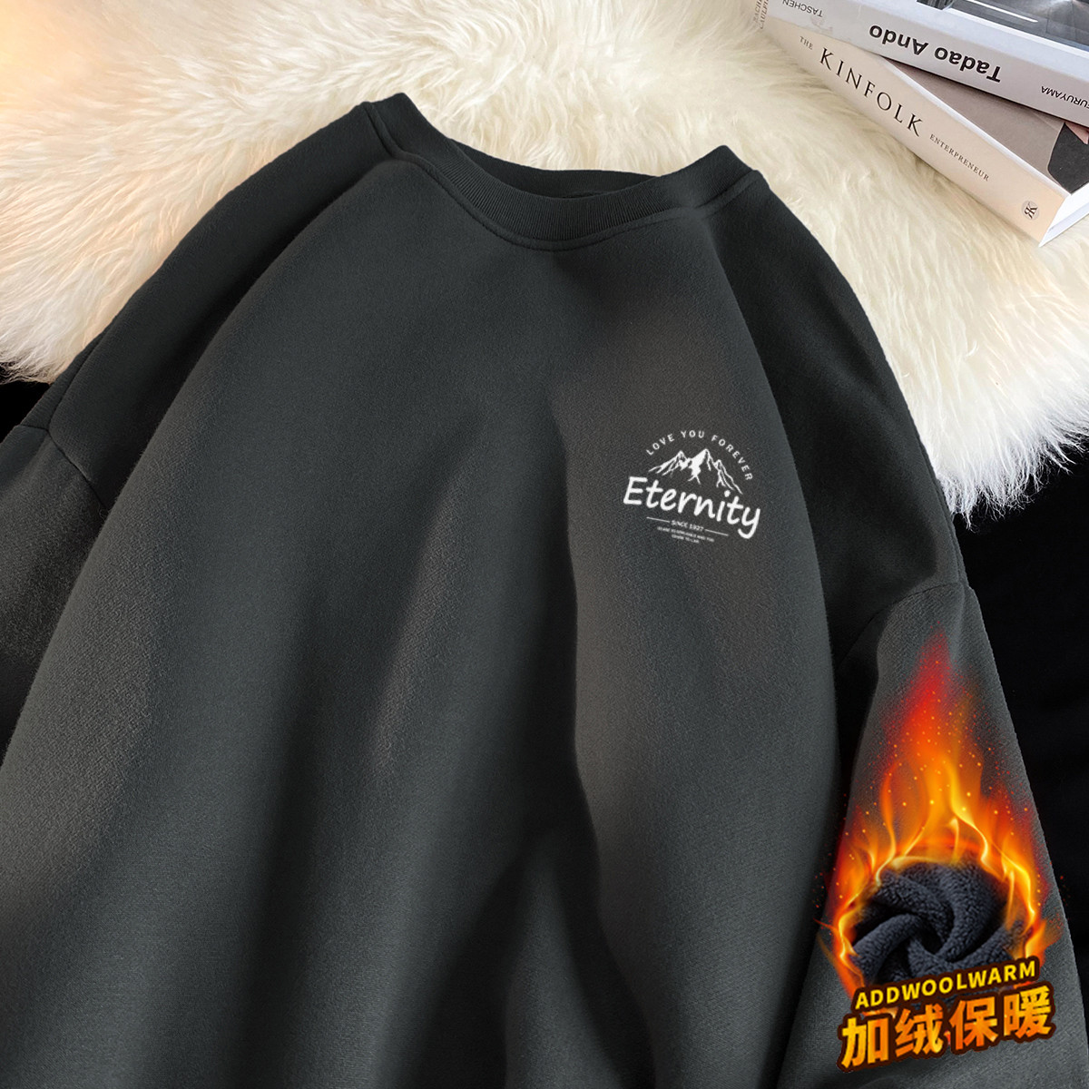 【加绒可选】圆领卫衣男运动卫衣男女同款宽松舒适潮流上衣 268115