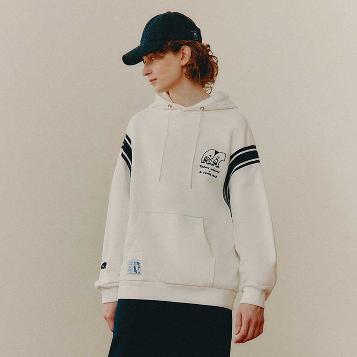 小熊男装春秋款刺绣宽松拼接连帽男士卫衣套头衫 893889