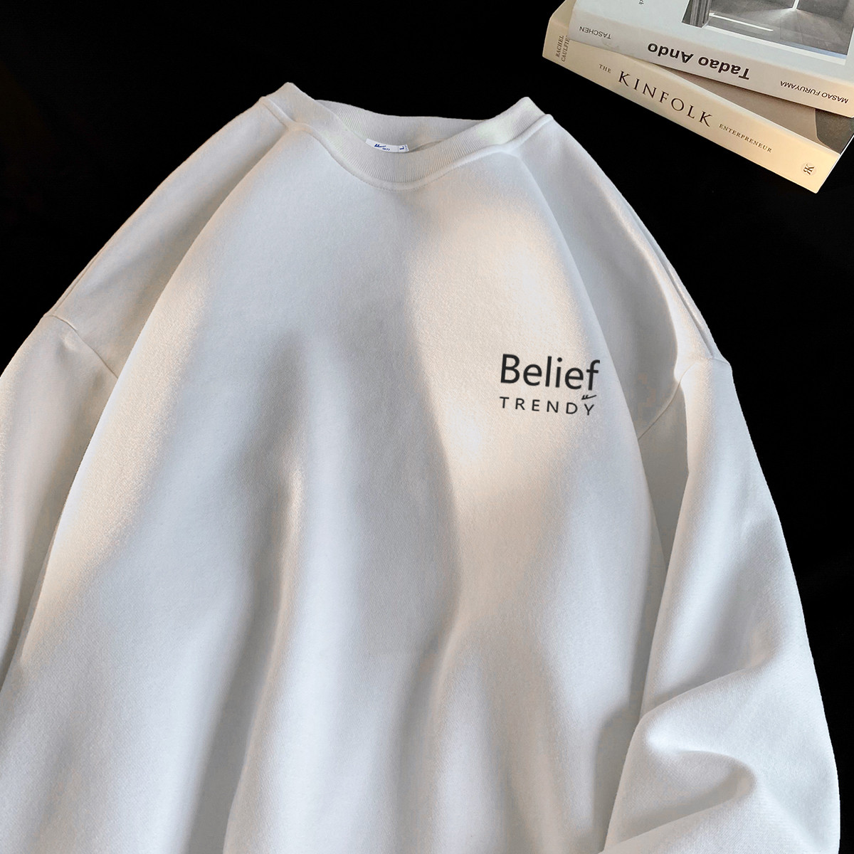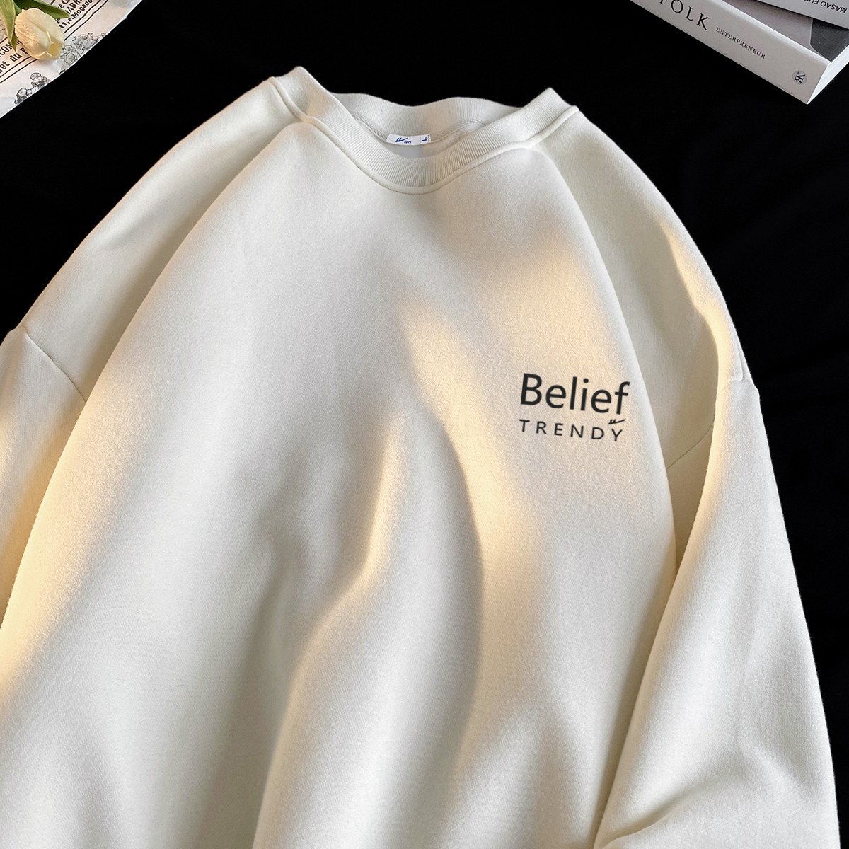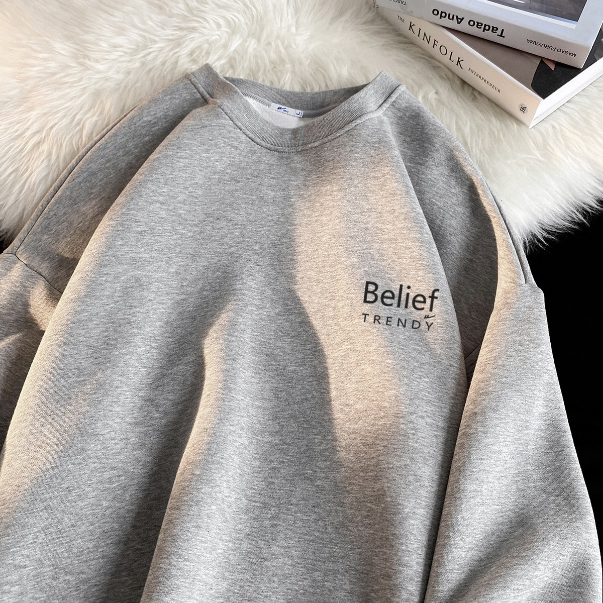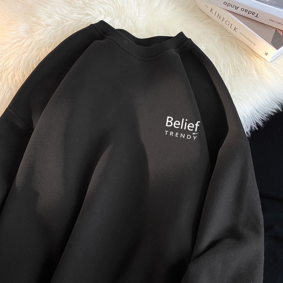 慵懒风圆领卫衣男女外套春宽松百搭无帽长袖情侣套头上衣女 055507