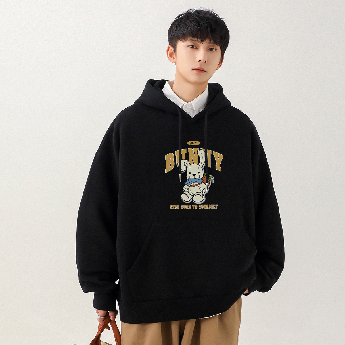 小熊男装春季时尚宽松印花纯棉连帽卫衣男士潮 044161