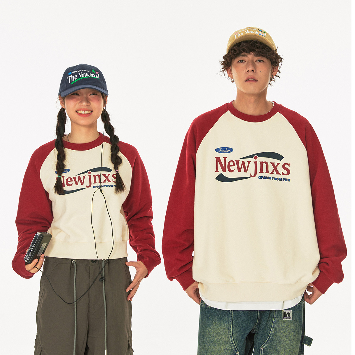JNXS美式复古印花插肩长袖卫衣男女春季国潮情侣休闲打底衫 606225