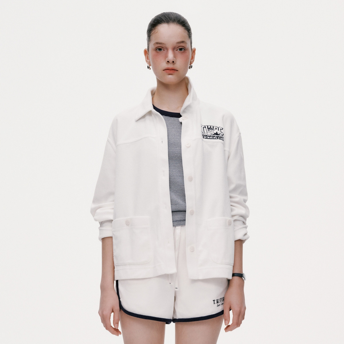 小熊毛巾布软糯衬衫式卫衣开衫外套短款小个子 392513
