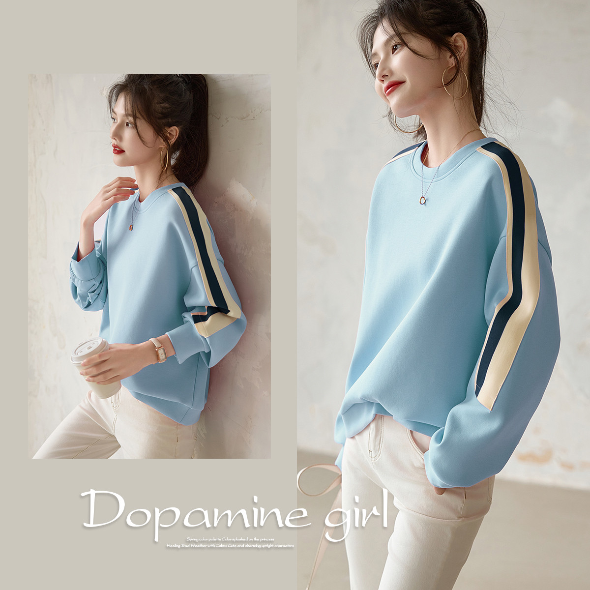 【时髦博主风】春秋圆领长袖弹力棉质撞色运动空气层卫衣女上衣 659585