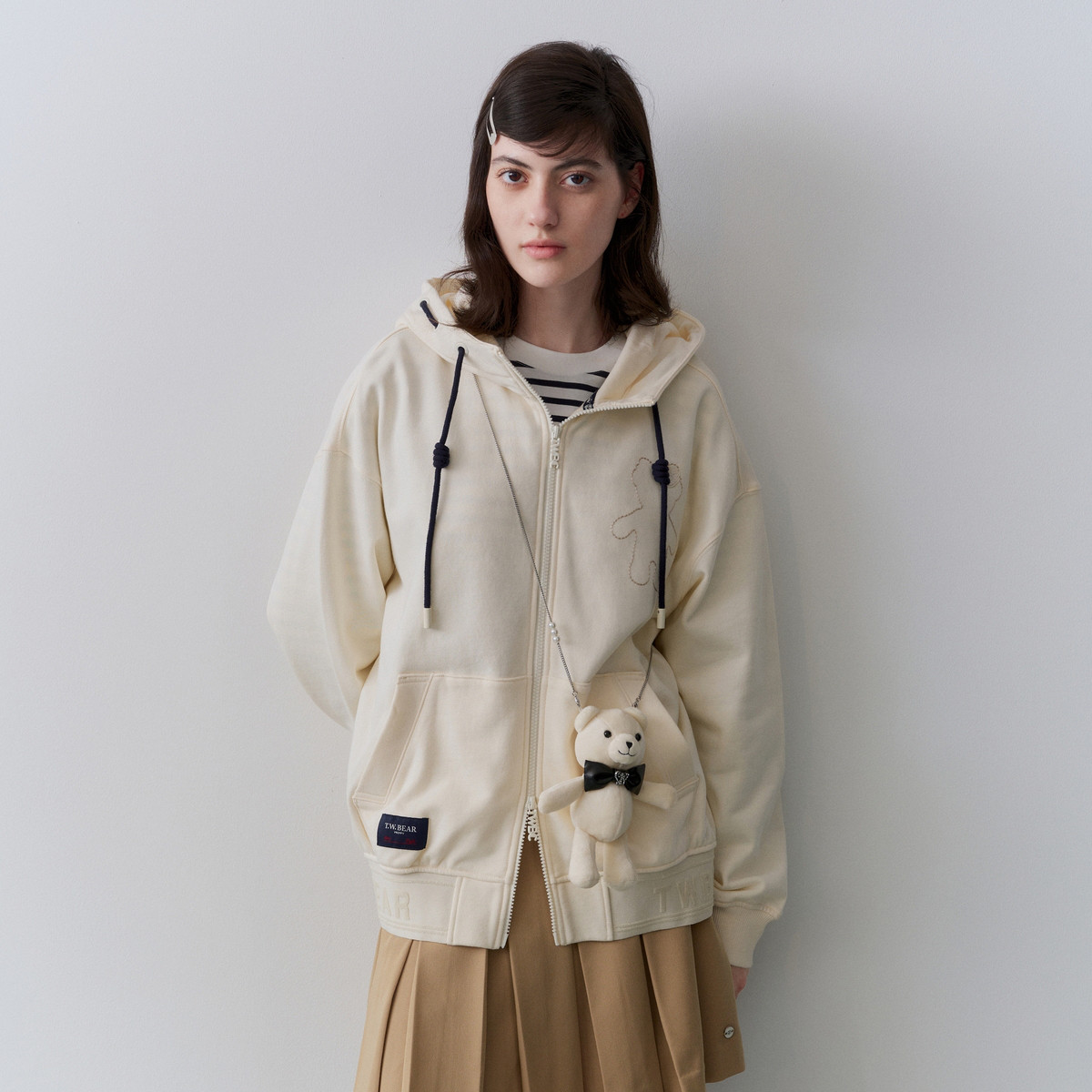 小熊2024年春季气质学院风宽松连帽卫衣开衫外套女 723137