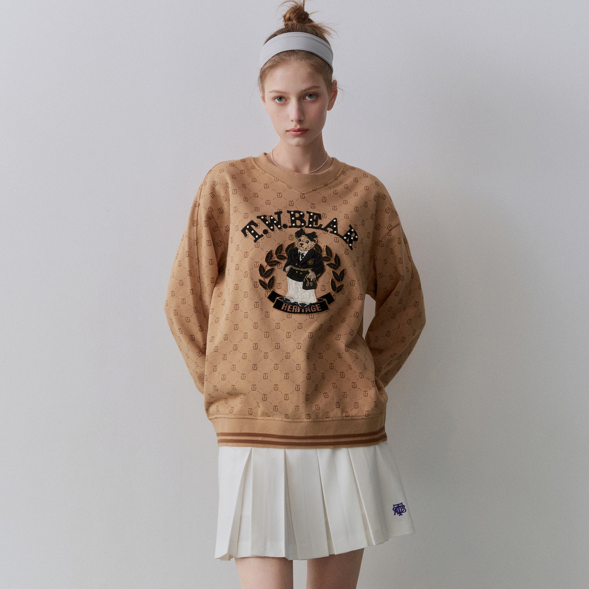 小熊女装春秋款学院风宽松满印大熊款圆领卫衣 436417