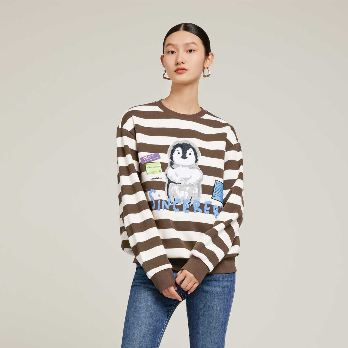 JZ玖姿冰河探索企鹅卫衣冬季字母宽松条纹上衣 379596