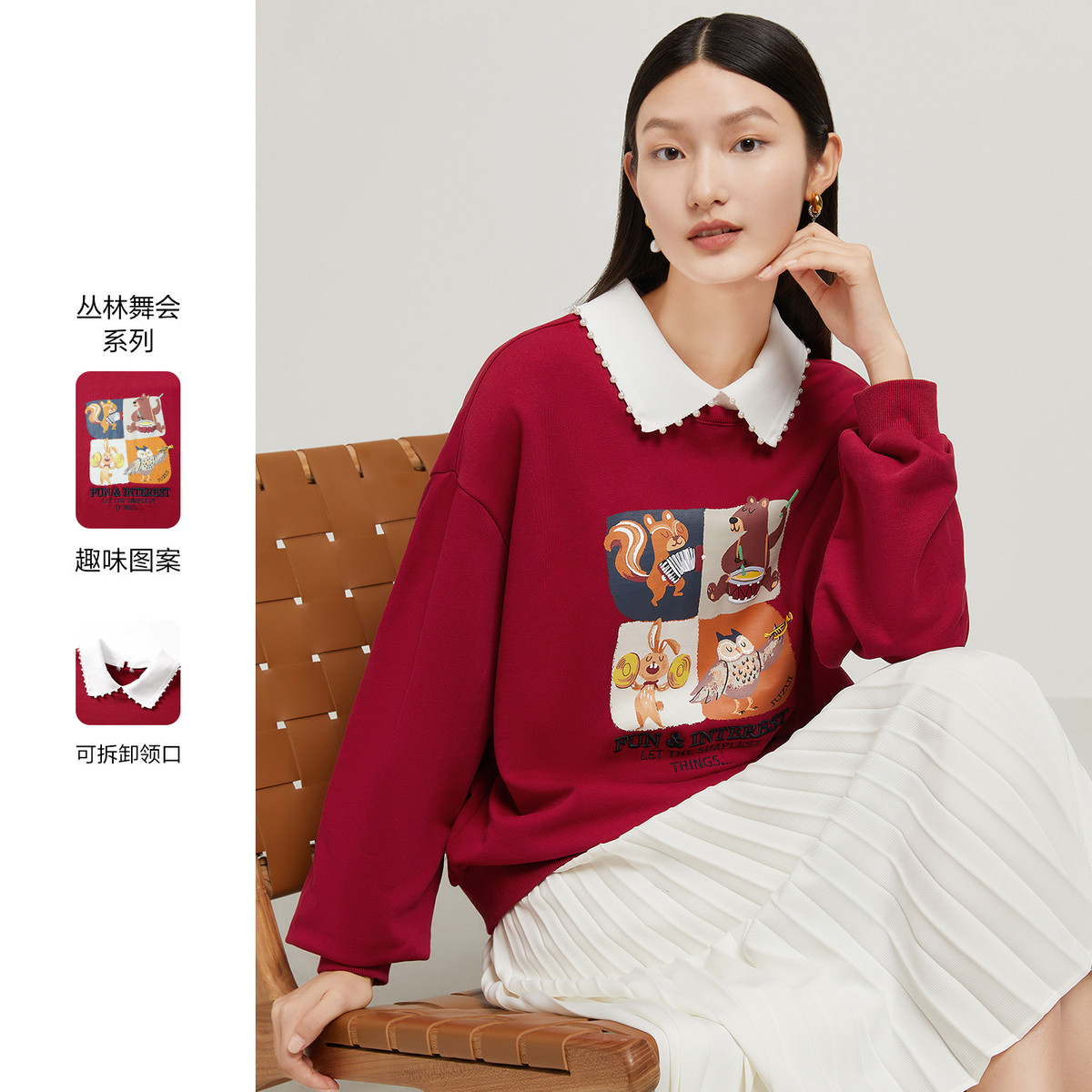 JZ玖姿丛林舞会卫衣女装秋季动物音乐印花时尚休闲上衣 924812
